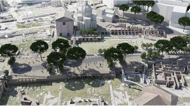 Imarciapiedi sono visibilmente più larghi sia dal lato dei Fori imperiali che da quello del Foro romano, in alcuni tratti si allargano e formano piccole isole pedonali. Alcune passerelle interne alle aree archeologiche facilitano fruizione dei Fori. 6 tavole scoperte dal Ministro della Cultura Gennaro Sangiuliano e dal Sindaco di Roma Roberto Gualtieri. Raccontano il progetto vincitore, quello dello studio Labics, per la realizzazione della Nuova Passeggiata Archeologica nell’area dei Fori Imperiali.