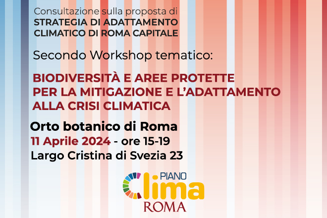 In programma giovedì 11 aprile il secondo workshop tematico organizzato nell’ambito della consultazione pubblica sulla Strategia di Adattamento Climatico di Roma Capitale. Dalle 15 alle 19, presso l’Orto Botanico, si parlerà di “Biodiversità e aree protette per la mitigazione e l’adattamento alla crisi climatica”. Per iscrizioni scrivere a pianoclima@comune.roma.it.