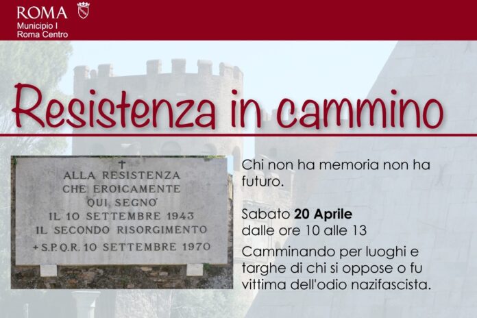 Il Municipio Roma I Centro promuove la seconda edizione di “Resistenza in cammino”. Un percorso attraverso luoghi, targhe, simboli per ricordare chi in quei tempi oscuri volle riaffermare libertà, dignità, solidarietà. Un omaggio tanto più necessario oggi quando soffiano potenti venti di guerra; quando intolleranza, violenza, nazionalismi si diffondono; quando si nega o manipola la storia. La memoria per non dimenticare e non ripetere gli orrori del passato. Il 20 aprile, dalle 10 alle 13, si camminerà nei luoghi in cui ci furono vittime dell’odio nazifascista ed in cui oggi sono state collocate targhe commemorative a memoria dell’accaduto. Si partirà da Piazza G. Lorenzo Bernini fino ad arrivare all’Ex Mattatoio di Testaccio.