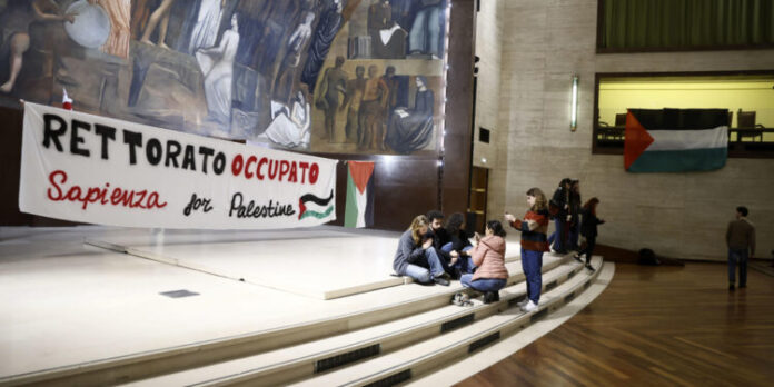 Scontri, arresti, sciopero della fame. Il furgoncino della polizia parcheggiato al varco 1 dell’Università La Sapienza di Roma, a piazzale Aldo Moro, suggerisce l’immagine di un ateneo in rivolta e in stato d’allerta, ancora di più dopo le tensioni di ieri. I ragazzi ribadiscono le loro richieste partendo dall’imprescindibile “stop agli accordi con Israele e le industrie belliche”. Dopo gli scontri di ieri, ai quali secondo la polizia erano presenti almeno cinque anarchici “estranei ai contesti universitari” e un palestinese dell’Unione democratica arabo palestinese (Udac), i presidi dei ragazzi alla Sapienza rimangono: la tendopoli sul pratone e gli studenti incatenati davanti al rettorato sono il segno che la protesta prosegue. Ieri erano Martina e Letizia, incatenate, oggi sono Francesca e Leonardo, che alla loro lotta aggiungono un altro atto di protesta: lo sciopero della fame. In un appello spiegano le motivazioni del loro gesto e invitano “democratici, pacifisti e società civile a sostenere le richieste di studenti e accademici nelle università per fermare il genocidio in Palestina”. Sono in sciopero della fame perché l’Italia “non è ancora disposta ad adoperarsi per costruire le condizioni per la pace”, spiegano. E si trovano davanti al rettorato della Sapienza “perché è dal cuore della più grande università d’Europa che ottenere un passo indietro da chi è complice di un genocidio può produrre un importante cambiamento”. La protesta proseguirà a oltranza fino a quando “la rettrice Antonella Polimeni non ascolterà le nostre richieste”, fa sapere Francesca mentre è incatenata al totem con accanto una bandiera della Palestina. E messaggi di solidarietà firmati Cambiare Rotta arrivano dalle università di tutta Italia, da Torino a Bari, tutti risvegliati da questa primavera di militanza. Nella stessa giornata, alcuni studenti di Spazio Catai e Potere al Popolo hanno occupato un’aula dell’Università di Padova per rinnovare la richiesta alla rettrice Daniela Mapelli di discutere una mozione relativa al boicottaggio accademico di Israele. Mettere in discussione le partnership di ricerca come hanno fatto Torino, Pisa, Bari. Alla Sapienza, riuniti in una conferenza stampa davanti agli amici in sciopero della fame, gli studenti e le studentesse di gruppi e collettivi hanno dato appuntamento per domani pomeriggio “a una grande assemblea pubblica” sul pratone dell’università. Vorrebbero, in questa sede, un confronto con Polimeni perchè, dicono, “non è accettabile che fugga dal dialogo con la sua comunità”. Tra le mani reggono uno cartello con su scritto “Stella libera, Mohammed libero”, i due manifestanti arrestati nel corso delle proteste durante il senato accademico nelle quali sono rimasti feriti 27 agenti. La prima è accusata di resistenza a pubblico ufficiale e lesioni, mentre il secondo di danneggiamento aggravato per essere salito su un’auto della polizia. Entrambi sono tornati liberi nelle prime ore del pomeriggio su disposizione dei giudici che hanno però convalidato gli arresti senza disporre misure cautelari. Stella in aula ha rigettato ogni accusa. Per i ragazzi di Sapienza for Palestine, inoltre, “è pretestuoso continuare a parlare di un assalto al commissariato che non c’è stato”. La tensione negli atenei è alta. Domani nella Conferenza dei rettori si discuterà un documento sulla sicurezza redatto da un gruppo di lavoro. Per il 24 aprile, inoltre, è previsto un comitato per l’ordine e la sicurezza con il ministro dell’Interno Matteo Piantedosi e la ministra dell’Università Anna Maria Bernini che conferma la linea dei giorni scorsi: proteste legittime, violenze no. Per questo motivo, in base a quanto si apprende da fonti qualificate, il comitato convocato si conferma, quindi, utile anche alla luce delle infiltrazioni degli anarchici tra gli studenti. Dal Viminale la linea è quella ribadita da tempo: non sono in programma modifiche in senso restrittivo nella gestione dell’ordine pubblico negli atenei. C’è, da parte delle forze di polizia, massima attenzione sui gruppi di area antagonista ed anarchica che puntano a cavalcare la protesta universitaria alzando il livello degli scontri di piazza.
