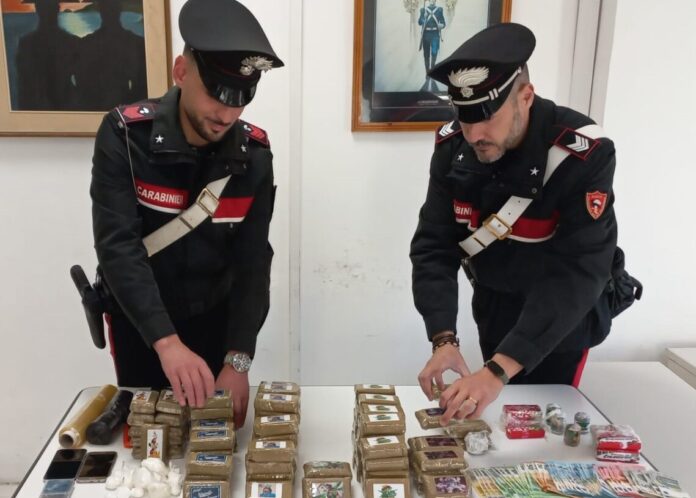 I Carabinieri del Nucleo Operativo della Compagnia di Anzio hanno arrestato un 40enne del Marocco gravemente indiziato del reato di detenzione ai fini di spaccio di sostanze stupefacenti, resistenza a Pubblico Ufficiale e lesioni personali. A seguito di numerosi servizi perlustrativi nel territorio del comune di Ardea – frazione Tor San Lorenzo, i Carabinieri hanno notato che l’indagato, già noto per i suoi precedenti, da qualche mese, aveva aperto un negozio di abbigliamento e aveva un tenore di vita particolarmente alto. Individuata l’abitazione dell’uomo, i Carabinieri hanno deciso di eseguire una verifica. Nel corso della perquisizione domiciliare, i militari hanno trovato la chiave di una cantina di pertinenza e, una volta avuto accesso all’interno, hanno rinvenuto un trolley pieno di sostanze stupefacenti. Nel dettaglio, vi erano oltre 11 kg di hashish, divisi in panetti, e circa 170 g di cocaina. Durante le operazioni, il 40enne ha opposto resistenza e tentato di darsi alla fuga ma è stato prontamente bloccato e arrestato. Nella circostanza, due Carabinieri hanno riportato lesioni guaribili in dieci giorni. Sequestrati anche 2.760 euro in contanti, un bilancino di precisione e vario materiale per il confezionamento in dosi. L’arrestato è stato condotto presso la casa circondariale di Velletri, a disposizione della locale Autorità Giudiziaria.