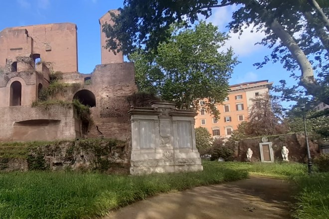 Da quasi tre secoli e mezzo la Porta Magica, con le sue iscrizioni e i suoi simboli alchemici ed esoterici, rimane un manufatto unico a Roma, ancora avvolto da un’aura di mistero. Entrando nei giardini di piazza Vittorio, frequentati sin dalle prime ore del mattino, bisogna cercarla in un angolo appartato dell’area archeologica dei Trofei di Mario, i resti di un ninfeo un tempo grandioso e ricco di vasche fatto costruire dall’imperatore romano Alessandro Severo. L’atmosfera meditativa e di ricerca spirituale che regnava sul posto nel Seicento sembra aver lasciato qualche traccia. La mattina presto non è raro imbattersi in gruppetti di persone che si radunano sullo spiazzo per allenarsi in discipline orientali. E il colorato multiculturalismo dell’Esquilino appare davvero il contesto ideale per questa strana Porta Magica. Senza sbocchi, murata in un blocco di terra e tufo, rappresenta un simbolo dell’alchimia, un complesso di pratiche e teorie che affonda le radici nell’antico Egitto e con una denominazione che deriva proprio dal termine arabo kīmiyā’.