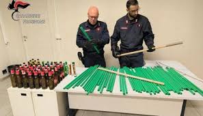 Bastoni fumogeni e bottiglie sequestrate dai carabinieri durante la partita Sora Avezzano. Si tratta di 52 bastoni della lunghezza di circa un metro ricavati tagliando i tubi in pvc di colore verde normalmente utilizzati per le condutture idrauliche, 2 bastoni in legno di circa 1,5 metri, una ulteriore asta in pvc di circa 4 metri, in origine destinata a porta bandiera ma poi spezzata, 2 fumogeni e ben 53 bottiglie in vetro. La partita, che si è svolta nel pomeriggio di ieri e terminata con il risultato di 1 a 2, vedendo quindi prevalere la squadra abruzzese, non ha però visto il verificarsi di criticità nella gestione dell’Ordine pubblico. Il materiale è stato trovato a seguito di una ispezione effettuata nei confronti di un autobus proveniente da Avezzano. Nel corso del controllo al mezzo l’autista non ha dato alcuna indicazione rimanendo sorpreso quando i Carabinieri gli hanno indicato gli oggetti nascosti sotto ai sedili. Con l’autobus, partito da Avezzano, sono giunti allo Stadio Tomei circa 50 tifosi che, a fine partita, saliti sul mezzo, non hanno più trovato il materiale che era stato già sequestrato dai carabinieri.