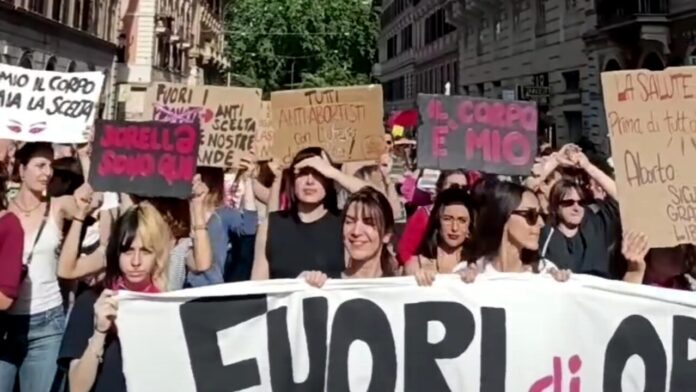 “Sul mio corpo decido io, contro il governo che apre le porte dei consultori a obiettori e antiabortisti” lo slogan del corteo a Roma organizzato da “Non una di meno” e dal coordinamento dei consultori sul diritto all’aborto da piazza Vittorio Emanuele II all’Esquilino fino a piazza Bocca della Verità. Tante le associazioni che hanno aderito. Tra queste anche la casa delle donne Lucha y Siesta che oggi ha denunciato di essere stata vittima di un atto vandalico. Nella notte tra venerdì 24 e sabato 25 maggio, ignoti hanno cosparso di feci la porta d’ingresso della Casa delle donne. “In 16 anni non era mai accaduto” hanno scritto in un post le attiviste.