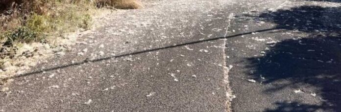 Via D’Annunzio a Ladispoli sommersa di pollini. “Sono state effettuate segnalazioni, chiamato carabinieri e vigili i quali ci hanno detto che non è di loro competenza. Il comune non ci risponde al riguardo e nemmeno sono intervenuti. Abito qui da 2 anni e ogni primavera siamo in queste condizioni, con i vicini che abitano da tempo e mi hanno riferito che non sono mai venuti a pulire”.