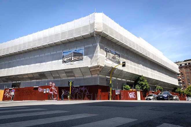 Riqualificazione e partecipazione sono le parole chiave del progetto Porto Fluviale RecHouse avviato da Roma Capitale, finalizzato al risanamento conservativo e all’efficientamento energetico della ex-caserma vincolata dal MiBAC come bene di interesse storico artistico. La realizzazione è possibile grazie a un investimento di 13,2 milioni di euro del Pnrr, la fine dei lavori è prevista nel 2026. L’attuazione del Porto Fluviale RecHouse è stata molto complessa, è stato infatti necessario combinare le esigenze di recupero edilizio con quelle abitative. Il bene, occupato dal 2003 da una comunità molto attiva nel quartiere, è stato inserito all’interno del programma Pnrr-Pinqua proprio per risolvere il cortocircuito che si è creato tra occupazione e insediamento ormai decennale. Il primo step è stato acquisire gratuitamente dal Demanio l’immobile che non era di proprietà di Roma Capitale (Legge su Federalismo culturale). Il secondo è stato condurre un censimento, in accordo con la comunità, da cui è emersa la presenza si 54 nuclei familiari stabili. A seguire, ormai chiaro il quadro, il Dipartimento del Patrimonio procederà, attraverso un Bando Speciale che mantiene i criteri tradizionali dei Bandi Erp, all’assegnazione degli alloggi; è prevista una specifica priorità ai nuclei già insediati, partecipanti al processo di rigenerazione urbana, nell’ottica di valorizzare l’intera comunità. In seguito, le famiglie, in pieno accordo con l’Amministrazione, sono state trasferite in altri immobili Erp e torneranno al Porto Fluviale alla conclusione dei lavori in corso di esecuzione da parte del Dipartimento LlPp. Dall’avvio del cantiere, oltre ad essere stati risolti gli aspetti abitativi, sono stati stabiliti gli interventi e la scelta dei materiali in accordo con la Soprintendenza di Stato, sono stati montati sulle facciate i ponteggi, è stato effettuato lo smontaggio degli elementi in copertura, sono stati ripuliti gli spazi interni e sgomberati i locali interrati. Il progetto prevede al primo e al secondo piano dell’immobile la realizzazione di residenze Erp, al piano terra spazi a servizio del quartiere coerenti ai principi di economia circolare e di vicinato per la comunità, sulla terrazza un giardino fotovoltaico che potrà consentire l’attivazione di una comunità energetica, nell’ampio cortile una piazza pubblica aperta al quartiere nella quale verranno attivati i servizi di: mercato a km 0, sportello antiviolenza, usi civici, attività di didattica, conservando le attività già presenti. Su tutte le facciate dell’edificio è presente una grande opera murale che l’artista Blu ha realizzato nel 2014 a sostegno del diritto alla casa e dell’occupazione dello stabile. In considerazione del processo partecipativo inclusivo che è stato portato avanti con la comunità, avendo raggiunto l’obiettivo di un’effettiva assegnazione di alloggi Erp alla comunità occupante, l’artista Blu è stato favorevole all’eliminazione dei murales. In accordo con la Soprintendenza Speciale, è stata stabilità la rimozione sulle facciate lungo Via del Porto Fluviale e Via delle Conce, il loro mantenimento sulle pareti cieche che affacciano su Via Ostiense, a valle delle necessarie verifiche in situ sullo stato di conservazione degli intonaci e sull’impatto generale con l’edificio restaurato. Come richiesto dalla Soprintendenza Speciale, il Dipartimento Lavori Pubblici ha incluso nel progetto uno studio di ricerca per documentare i murales, l’incarico è stato affidato all’Università di Roma Tre che ha partecipato anche alla redazione del progetto di fattibilità del Porto Fluviale Rec House.