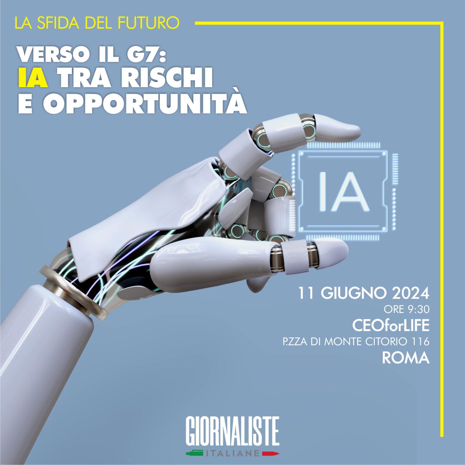 ”Verso il G7: IA rischi e opportunità” è il titolo del convegno voluto e organizzato dall’associazione Giornaliste Italiane, che si terrà domani martedì 11 giugno a Roma, in piazza Montecitorio nello spazio di CeoForLife a partire dalle 9.30. Un appuntamento pensato per prendere in esame il tema dell’IA con esponenti del Governo, con esperti del settore e con giornalisti in vista anche dell’appuntamento internazionale che vedrà protagonista l’Italia, il G7 in Puglia da giovedì 13 a sabato 15 giugno in Puglia a Borgo Egnazia. All’evento romano di domani parteciperanno, tra gli altri, il sottosegretario alla Presidenza del Consiglio e Autorità delegata per la Sicurezza della Repubblica, Alfredo Mantovano; il ministro del Lavoro e delle Politiche Sociali, Marina Calderone; il ministro della Cultura Gennaro Sangiuliano; il sottosegretario alla Presidenza del Consiglio con delega al Cipess Alessandro Morelli e il sottosegretario alla Presidenza del Consiglio con delega all’Informazione e Editoria Alberto Barachini. Nel corso della mattinata verrà mandata in onda un’intervista a Padre Paolo Benanti, Consigliere di Papa Francesco sui temi dell’Intelligenza Artificiale e dell’Etica della tecnologia.