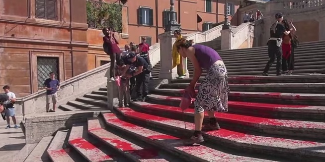 Per protestare contro i femminicidi, a Roma sei attivisti del movimento “Bruciamo tutto” hanno versato della vernice rossa sulla scalinata di Trinità dei Monti. Il gruppo ha anche esposto uno striscione e gettato dei volantini con i nomi delle donne uccise: da Giulia Cecchettin fino alle ultime vittime. A piazza di Spagna sono intervenute pattuglie della polizia. I manifestanti sono stati subito portati via e la scalinata è stata chiusa al pubblico. Due squadre interventi speciali di Ama sono giunte sul posto per rimuovere la vernice rossa Il personale del pronto intervento aziendale, che ha lavorato in stretto coordinamento con la polizia locale e la Sovrintendenza capitolina, ha utilizzato idropulitrici speciali con getto di acqua calda per non danneggiare gli storici gradini.