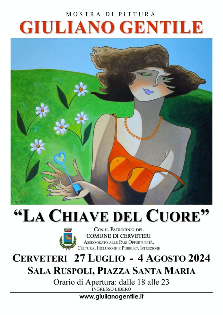 Nel Palazzo Ruspoli in Piazza Santa Maria, dal 27 luglio al 4 agosto 2024 sarà ospitata la mostra di pittura “La Chiave del Cuore” dell’artista Giuliano Gentile. L’ingresso è libero per tutti i visitatori, orario di apertura dalle 18 alle 23.