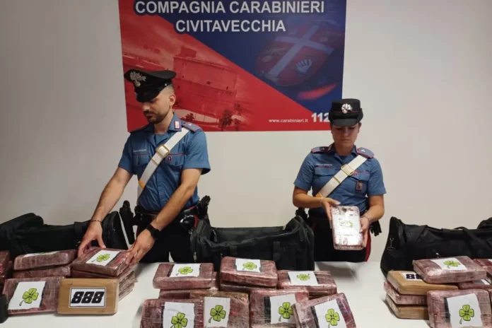 I Carabinieri della Compagnia di Civitavecchia, d’intesa con la locale Procura della Repubblica, nei giorni scorsi, hanno arrestato tre uomini, due di 43 e 57 anni, residenti a Terni e già noti alle forze dell’ordine per reati in materia di stupefacenti e un 31 enne residente a Roma, incensurato, gravemente indiziati del reato di detenzione a fini di spaccio di sostanze stupefacenti in concorso. I tre, controllati dai Carabinieri all’uscita dall’area portuale di Civitavecchia, a bordo di due auto, sono stati trovati in possesso di 3 borsoni, contenenti 44 involucri termosaldati poi risultati contenere 51,222 kg di cocaina. Nello specifico la droga era nel bagagliaio dell’auto condotta dal 43 enne preceduta da auto con a bordo gli altri due. Oltre alla droga e le auto prese a noleggio, i Carabinieri di Civitavecchia hanno anche sequestrato 6 telefoni cellulari, 2 dispositivi G.P.S., 2 ricetrasmittenti, 2 scale e utensili vari rinvenuti nella disponibilità dei tre arrestati e che si ipotizza possano essere stati adoperati per estrarre lo stupefacente da contenitori stoccati presso l’area portuale. I tre indagati sono stati condotti presso il la Casa Circondariale di Civitavecchia, nuovo complesso Borgata Aurelia dove il Tribunale di Civitavecchia ha convalidato il loro arresto e disposto la custodia cautelare in carcere. Si precisa che il procedimento penale versa nella fase delle indagini preliminari per cui gli indagati devono considerarsi innocenti fino ad eventuale sentenza definitiva.