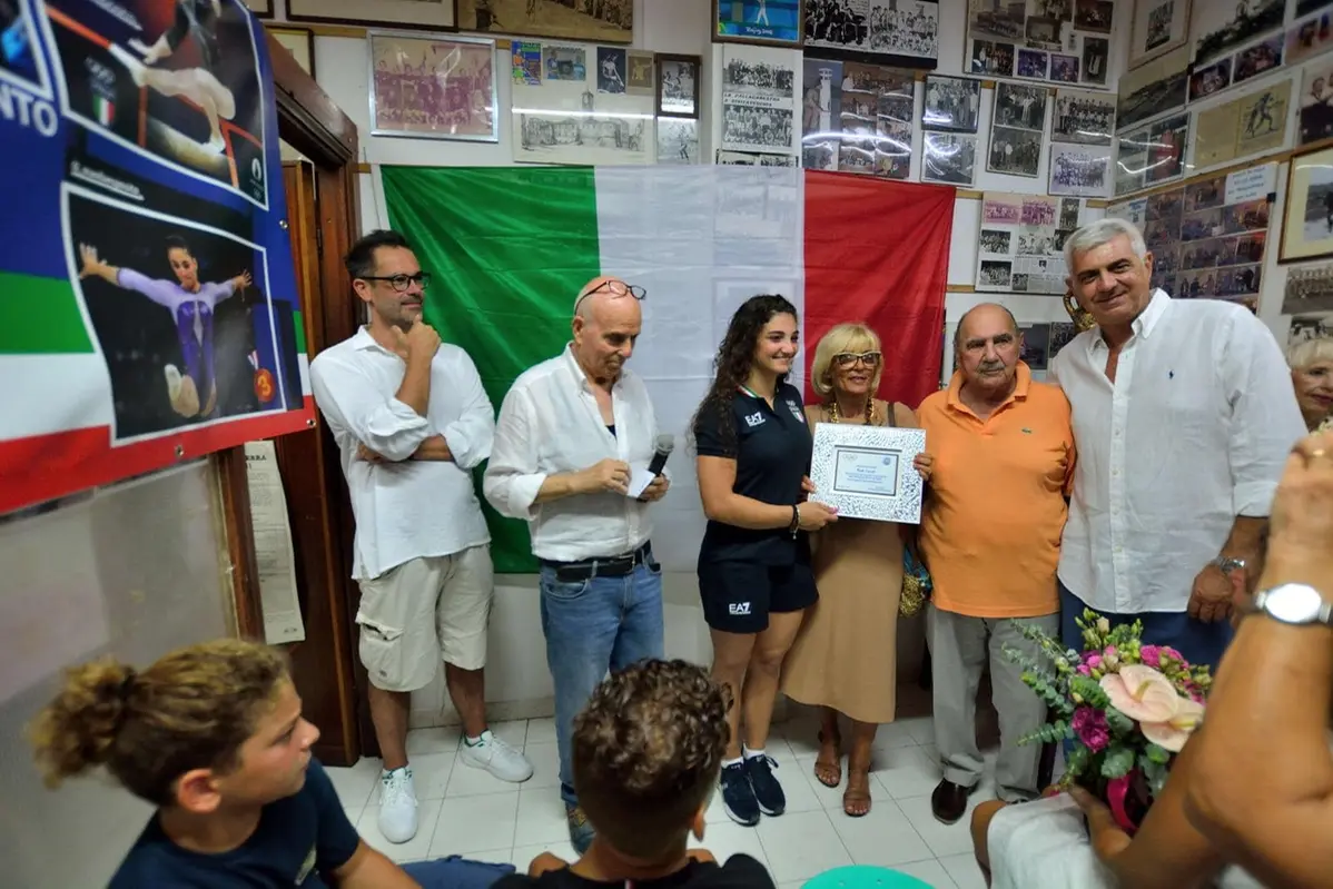 Ancora una grande festa per Manila Esposito, dopo quella all’aula Pucci con il Comune. Nella serata di sabato, tra una tavolata e l’altra dei vicini locali, impegnati a far gustare momenti di relax a tantissimi civitavecchiesi, ha trovato posto al Ghetto, nella sede dell’associazione Civitavecchia C’è, un’altra premiazione per la vincitrice dell’argento nella gara a squadre e del bronzo a trave alle Olimpiadi di Parigi. Ad organizzare il tutto ci ha pensato proprio l’organismo presieduto da Roberto Melchiorri, che ci ha tenuto a rimarcare la sua vicinanza alle sorti di Manila sin dal 2016, quando era stata premiata sempre nella piccola sala di via Cadorna. A collaborare all’evento c’è stata la Fondazione Cariciv, con la presidentessa Gabriella Sarracco che si è detta rapita dopo aver visto le esibizioni di Queen Manila in televisione. Presenti all’evento anche i personaggi più importanti di Civitavecchia C’è, tra cui proprio Melchiorri e Daniele Lisi, conosciuto anche per essere l’allenatore della Nautilus di pallanuoto, l’assessore al Lavoro, Piero Alessi, l’ex candidato sindaco Paolo Poletti, l’ex assessore ai Servizi Sociali, Cinzia Napoli, Stefania Milioni della Caritas, e, come detto, la Fondazione Cariciv con Gabriella Sarracco e l’avvocato Valentino Carluccio. Tantissimi gli omaggi per Esposito, accompagnata in sede dai genitori e dai fratelli, innanzitutto floreali e soprattutto una magnifica targa con riferimenti in oro, con la speranza che sia al metallo che possa spuntare al collo della ginnasta civitavecchiese alle prossime Olimpiadi di Los Angeles, con la ragazza che ha già dichiarato che è il suo nuovo obiettivo a lungo raggio sia nell’intervista a Sportface, che alla trasmissione di Rai 2 “Notti olimpiche”, con Jacopo Volpi e Juri Chechi. Anche in questo caso in tanti hanno colto l’occasione per porgere i loro complimenti a Manila Esposito e catturare lo splendido momento con i classici selfie. Esposito, sicuramente non abituata a tutte queste attenzioni e che ha confidato di non amare di stare sotto i riflettori, si sta dimostrando una ragazza che sta vivendo in maniera significativa ogni momento, nel quale tutti le vogliono stare vicino e tutti vogliono avere la foto e l’autografo della campionessa, e lei sta cercando di vivere tutto questo nella maniera più semplice possibile, risultando una campionessa anche di gentilezza, di sorrisi e di disponibilità. Intanto il Coni ha fatto sapere che il prossimo 23 settembre gli atleti medagliati ai Giochi Olimpici saranno ricevuti e celebrati dal presidente della Repubblica, Sergio Mattarella, alla sala del Quirinale.