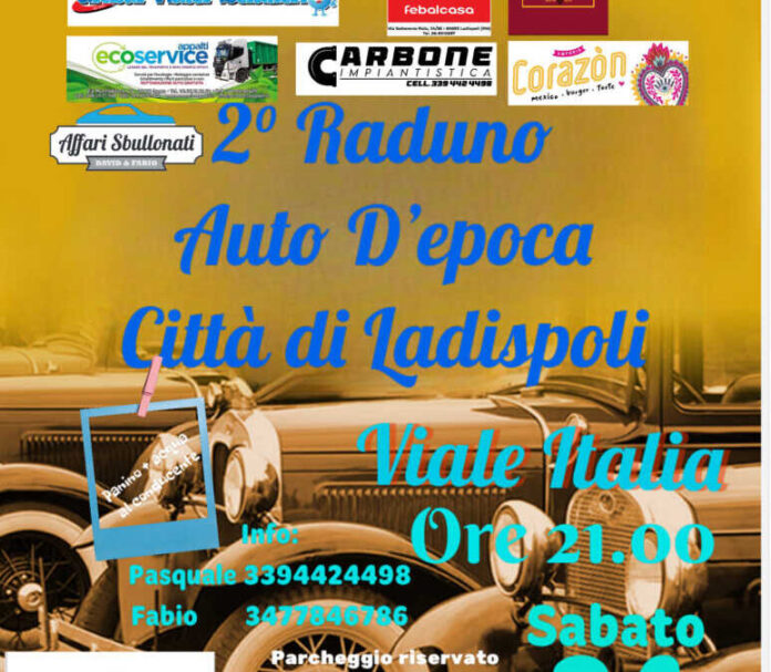 Pasquale Carbone e Fabio Ricca creatori dell’associazione “Volanti Storici Ladispoli“ porteranno le più belle auto storiche patrimonio del nostro territorio. Per tutti i conducenti verrà offerto da mangiare accompagnato da un simpatico gadget. L’appuntamento è per il 24 agosto dalle 21 in viale Italia.