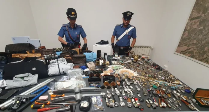 Dalle prime indagini partite dopo i furti, dall’analisi delle immagini di alcune telecamere di sorveglianza, i Carabinieri sono risaliti all’auto con cui gli autori del furto si erano allontanati; una Lancia Y presa a noleggio che grazie alle ricerche diramate su tutto il territorio della Capitale e provincia, è stato possibile rintracciare a Roma, in via Eugenio Donadoni, dove i Carabinieri hanno scoperto un appartamento che era una base dove erano stoccati vari oggetti provento di furto. All’interno dell’immobile i Carabinieri hanno trovato i sei uomini che sono stati denunciati, vari arnesi atti allo scasso, una pistola ad aria compressa, priva del tappo rosso, la somma contante di 6.297 euro; 51 orologi di varie marche; 16 borse di note griffe; vari capi di abbigliamento di noti brand commerciali (alcuni dei quali ancora con etichetta); 2 play station 5; varie collane e gioie. L’auto presa a noleggio, gli attrezzi e la pistola sono stati sequestrati come anche la refurtiva di cui è stato realizzato un dettagliato inventario allo scopo di risalire ai legittimi proprietari, per la restituzione.