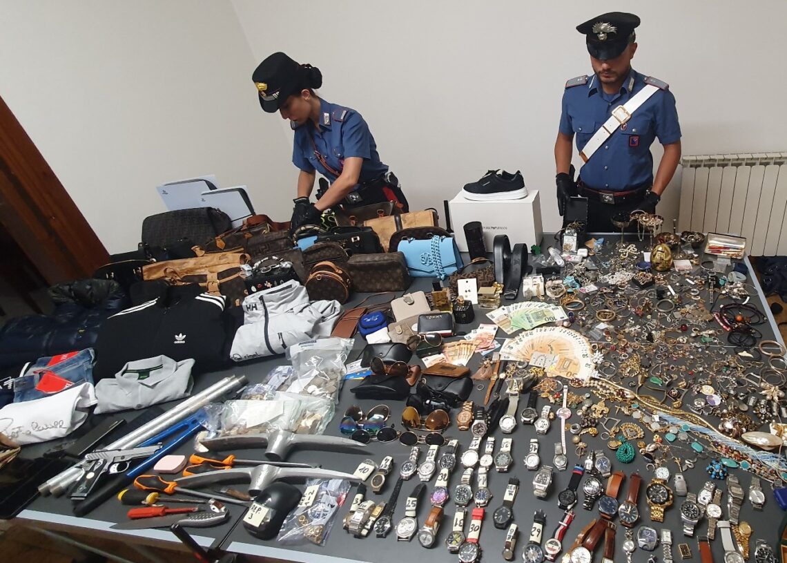 Erano l’incubo dei Castelli Romani e di Ardea. Sei uomini, un colombiano, un cubano, 2 cileni e 2 argentini sono stati denunciati per ricettazione dai Carabinieri della Stazione di Cecchina, insieme alle Aliquote Operative della Compagnia di Castel Gandolfo e della Compagnia di Ostia. A seguito di tre furti commessi in una abitazione di Albano Laziale e di altre due abitazioni, poco distanti, nel comune di Ardea, i Carabinieri hanno avviato le indagini che hanno consentito di recuperare un ingente quantitativo di refurtiva, tra cui quella appena sottratta dalle abitazioni di Albano e di Ardea. Dalle prime indagini partite dopo i furti, dall’analisi delle immagini di alcune telecamere di sorveglianza, i Carabinieri sono risaliti all’auto con cui gli autori del furto si erano allontanati; una Lancia Y presa a noleggio che grazie alle ricerche diramate su tutto il territorio della Capitale e provincia, è stato possibile rintracciare a Roma, in via Eugenio Donadoni, dove i Carabinieri hanno scoperto un appartamento che era una base dove erano stoccati vari oggetti provento di furto.