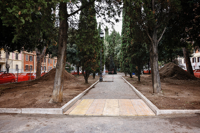 Sono stati avviati i lavori di riqualificazione che interesseranno viale e piazza Mazzini, nel quartiere Delle Vittorie. Il progetto, finanziato con oltre 2 milioni di euro, riguarda una superficie complessiva di 35mila mq caratterizzata dalla presenza di 750 alberi secolari, di cui circa 165 nella piazza, e prevede la complessiva riqualificazione del patrimonio vegetazionale sul quale verranno, in una prima fase, effettuate le indagini fitostatiche strumentali per verificarne lo stato di salute e poi le potature. Per ricostituire l’assetto arboreo il progetto prevede la messa a dimora di 80 nuove alberature, in particolare lecci e cipressi, e circa 650 metri lineari di siepi ornamentali di piante di lauro e pitosforo. Una volta completati gli interventi di riqualificazione della componente vegetazionale, si procederà con la sistemazione delle pavimentazioni, dei cigli in travertino, delle aiuole, degli arredi e dell’illuminazione. Le superfici decorate, la fontana e i relativi elementi architettonici e decorativi saranno restaurati con un distinto intervento curato dalla Sovrintendenza capitolina. Tra le peculiarità del progetto vi è l’intervento di depaving, cioè di rimozione dello strato di asfalto, che riguarderà le due aree spartitraffico e la parte finale di viale Mazzini verso piazzale Clodio su una superficie complessiva di 2.300 mq, con l’obiettivo di favorire l’assorbimento del terreno delle acque piovane e ripristinare l’assetto originale del giardino. La conclusione dell’intervento è prevista entro agosto 2025.