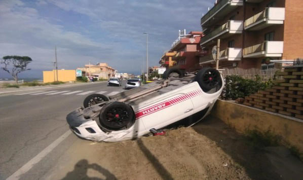 Ardea, ruba un’auto e fugge a folle velocità, poi si schianta e si ribalta sul lungomare