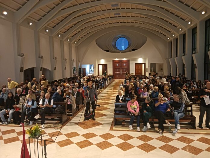 La festa di San Francesco d’Assisi, patrono d’Italia e degli animali, che si svolge il 4 ottobre, era addirittura un giorno di chiusura per le scuole italiane. Oggi non è più una festa così solenne, ma a Cerveteri, ieri domenica 6 ottobre, si è voluto celebrare il grande e amatissimo Santo con una manifestazione svolta all’interno della chiesa della Santissima Trinità. “San Francesco – Strada d’Amore e di Pace”, èstata una rappresentazione teatrale multimediale, scritta e diretta dal regista e attore Agostino De Angelis. Che ha visto la partecipazione di tutta la comunità parrocchiale. Abbiamo assistito a performance teatrali, letture, canti e spezzoni di “Francesco, giullare di Dio”. Un film del 1950, direttoda Roberto Rossellini. A questa manifestazione, come già detto, hanno partecipato fattivamente, oltre ai consueti attori della compagnia di De Angelis, i fedeli della parrocchia. Sia con il loro coro che ha intonato gli inni sacri legati al San Francesco. Sia con le letture dei brani che ci hanno raccontato la vita del Santo. Ma anche e soprattutto con la loro presenza. La chiesa era infatti gremita nonostante fosse ormai l’ora canonica di cena. Tutti bravissimi e impeccabili. Hanno condotto più di un ora e mezza di spettacolo senza incertezze o cali di tensione emotiva. Un nuovo meritato successo di Agostino De Angeli e di Desirèe Arlotta, che hanno messo in scena uno spettacolo a sfondo religioso che ci ha fatto conoscere meglio la vita di San Francesco, e lo spirito profondo dei suoi insegnamenti.