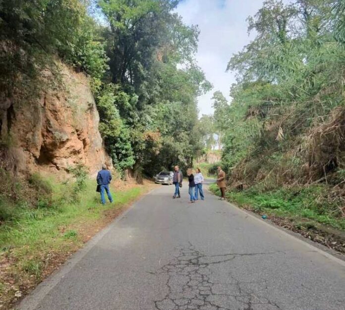 Via di Ceri, un tecnico incaricato dalla Regione Lazio in sopralluogo sul tratto interessato dal crollo del costone tufaceo