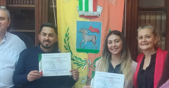 “Oggi Daniel Stiven Martínez e Tatiana Martinez, due giovani di origine Colombiana sono diventati cittadini italiani. Daniel e Tatiana sono arrivati giovanissimi dalla Colombia con la loro mamma, Alba Perdomo, oggi membro della Consulta dei Migranti di Cerveteri e mia delegata, hanno sempre vissuto nella nostra città e frequentato le nostre scuole. Hanno studiato, sono cresciuti, si sono integrati e adesso hanno un lavoro. Da oggi hanno giurato di essere fedeli alla Repubblica e di osservare la Costituzione e le leggi dello Stato e sono diventati ITALIANI. La loro è una storia di costruzione di un appartenenza perché, da quando sono arrivati bambini in Italia, hanno sempre vissuto a Cerveteri e si sentono di appartenere a questa comunità. Nei loro occhi l’emozione tangibile di aver conquistato un traguardo importante, nella mia mente l’idea che per questi giovani finalmente fosse arrivata dallo Stato quella garanzia che pone fine alla precarietà, all’incertezza del futuro, all’impossibilità di sentire che le proprie radici affondano anche qui, nel terreno dove vivono e hanno tessuto la trama della loro storia personale e umana. Per loro, come per tantissimi ragazzi e ragazze stranieri, essere cittadini italiani non deve essere una conquista ma una tutela dei diritti che già hanno. Ecco quello che vogliamo: essere una comunità capace di trovare le strade per costruire senza esclusioni una convivenza più giusta, più sicura, più pacifica!”.