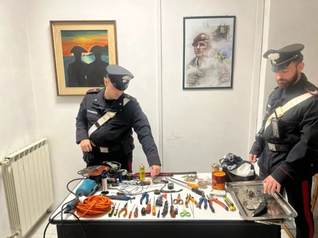 I Carabinieri dell’Aliquota Operativa del Nucleo Operativo e Radiomobile della Compagnia di Anzio hanno arrestato in flagranza di reato due cittadini albanesi, di 42 e 43 anni, entrambi senza fissa dimora e con precedenti, gravemente indiziati dei reati di rapina, ricettazione e resistenza a pubblico ufficiale. Durante un servizio perlustrativo organizzato dall’Aliquota Operativa in un’ottica di maggiore prevenzione e sicurezza notturna mirati a contrastare le rapine ed i furti in appartamento, con militari sia in abiti civili che in uniforme, i Carabinieri hanno notato due persone scappare velocemente da un’abitazione. Ragion per cui insospettiti, hanno deciso di raggiungerli e bloccarli per un controllo. I due uomini, al fine di sfuggire all’identificazione e farla franca, hanno opposto resistenza minacciando i militari con un giravite. Bloccati definitivamente, i Carabinieri a seguito della perquisizione personale e del veicolo a loro in uso che è risultato rubato nell’agosto scorso, hanno rinvenuto e sequestrato attrezzi da scasso (giraviti, piedi di porco, frullino, fiamme ossidriche, pinze e grimaldelli) nonché l’intera refurtiva asportata poco prima dall’abitazione, che è stata riconsegnata al proprietario.