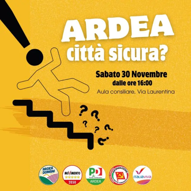 Sabato 30 novembre alle 16, presso la sala consiliare “Sandro Pertini” di Ardea, ci sarà l’incontro “Ardea Città Sicura?”, curato da Ardea Domani, M5S, Pd, Rifondazione Comunista e Italia Viva. “In fondo, “Casa” è semplicemente un luogo sicuro, un luogo che si prende cura di noi, un luogo in cui nascono e crescono le relazioni più belle, quelle che ci permettono di crescere – si legge nella nota -. Forse è per questo che nell’avviare un percorso con altre forze politiche alternative alla destra che governa da decenni la nostra città, siamo voluti partire da questa domanda: ma Ardea, per chi vive qui, è una città sicura? E poiché per dare risposte adeguate, occorre sempre prima mettersi all’ascolto, abbiamo deciso di proporre alla città un breve questionario (https://bit.ly/ArdeaSicurezza). Sabato pomeriggio, in aula consiliare, ci ritroveremo per capire come è andata, cosa pensano le persone che hanno deciso di rispondere alle domande. Lo facciamo con un evento aperto, che siamo certi sarà prezioso nella misura in cui sarà ricco di spunti e partecipazione. Vi aspettiamo, quindi, sabato 30 novembre alle 16 in aula consiliare”.