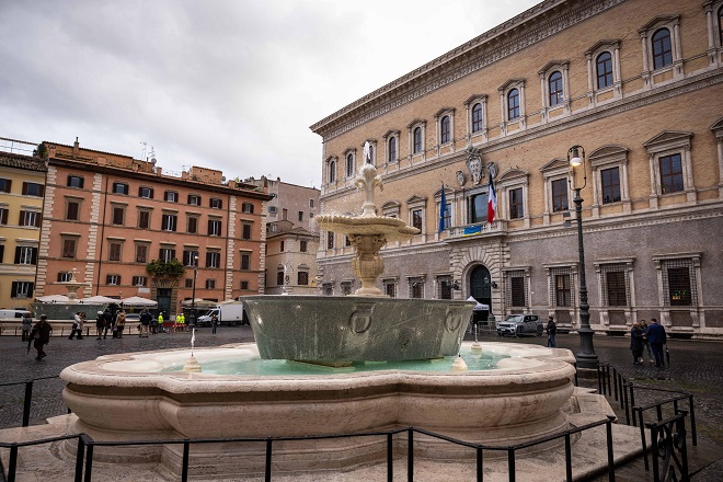 Torna a splendere Piazza Farnese con la chiusura del cantiere e l’inaugurazone della facciata del Palazzo e delle due fontane monumentali. Doppia inaugurazione nel pomeriggio per due interventi distinti di tutela del patrimonio culturale: quello al Palazzo curato dall’ambasciata con la Soprintendenza e quello sulle fontane curato dalla Sovrintendenza capitolina nell’ambito del programma Pnrr Caput Mundi. Presenti all’evento l’Ambasciatore di Francia in Italia Martin Briens, il Sindaco di Roma Roberto Gualtieri, la direttrice dell’École française de Rome Brigitte Marin, la Soprintendente speciale Archeologia Belle Arti e Paesaggio di Roma Daniela Porro, l’Assessore alla Cultura Massimiliano Smeriglio e il Sovrintendente Capitolino ai Beni Culturali Claudio Parisi Presicce. “È un piacere essere qui dove hanno lavorato alcuni tra i più grandi geni dell’arte e della architettura, una meraviglia del mondo – ha dichiarato il sindaco Gualtieri – È un piacere per me accompagnare la riapertura delle fontane di piazza Farnese. Due vasche di granito monoblocco romane, prese dalle Terme di Caracalla e poi nel ‘600 trasformate in fontane. Ringrazio i restauratori della soprintendenza per il loro lavoro, che ha comportato tra l’altro la rimozione del calcare. Questa opera cementa l’amicizia tra la Francia, l’Italia e Roma nello spirito europeo, testimoniando i valori comuni. Queste non sono solo sedi di lavoro ma monumenti importantissimi. Proseguiamo piano piano con la chiusura dei cantieri di restauro delle fontane”. Poi sui lavori alla facciata di Palazzo Farnese il Sindaco ha aggiunto: “Il lavoro sulla facciata è davvero straordinario, una meraviglia che restituisce questo capolavoro dell’architettura alla gioia dei romani e di tutto il mondo. Ora tutta la piazza risplende come non si era mai vista da tantissimi decenni”. “È un giorno importante per tutti noi e per i romani che hanno il piacere di rivedere la facciata libera – ha detto l’ambasciatore Briens – Volevamo fosse pronta per il Giubileo e ce l’abbiamo fatta”.