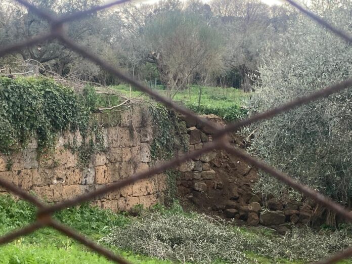 Nel tratto di strada che conduce dal cimitero storico alla Settevene , proprio sulla sinistra scendendo , una splendida muraglia di antichissimi blocchi di tufo sta franando irrimediabilmente. È un muraglione di valore storico che separa le proprietà della signora Carlotta Rosi in Perciballi ed altre piccoli appezzamenti dagli ulivi secolari.