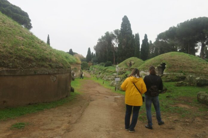 Domenica scorsa, entrando nella biglietteria della Necropoli della Banditaccia per l’ormai consueto affiancamento domenicale dei soci del GAR al personale di accoglienza, siamo stati accolti da “L’avete già scarica l’app?” Era uno dei punti qualificanti delle linee guida che Bellelli vuole perseguire nel 2025. Quella di migliorare la fruizione del Parco Archeologico. In tutti i suoi quattro siti. In particolare, ci disse che: “È importante affrontare l tema dell’accessibilità cognitiva. Cioè, fare in modo che ci siano sempre le condizioni affinché il visitatore comprenda bene cosa sta visitando. Anche lavorando sul linguaggio delle comunicazioni, rendendolo, appunto, più accessibile al grande pubblico.” Necessità condivisa e sacrosanta. Purtroppo era palese che i visitatori delle necropoli, quella della Banditaccia in particolare perché la conosco meglio, giravano con una piantina in mano, fornita dalla biglietteria, senza minimante rendersi conto di quello che stavano vedendo. E apprezzando solo la bellezza di quello che avevano davanti, senza capire cosa avessero la fortuna di ammirare. Una possibile soluzione? Un’audioguida. Che è proprio quella che il personale di accoglienza del Parco ci aveva chiesto di scaricare. Va bene, direte voi. Il Parco Archeologico di Cerveteri e Tarquinia ha finalmente un’audioguida. Era ora. Dove sta la notizia? Eppure, la notizia c’è. Perché non si tratta di una semplice audioguida come quelle che siamo abituati a utilizzare in un’area archeologica o, più spesso, in un museo. Questa audioguida, oltre ad un funzionamento tecnico impeccabile, ha due grandissime e uniche qualità: Ha dei testi recitati come in un audiolibro di livello, che ti prendono per mano e ti introducono nel mondo degli Etruschi e delle necropoli come meglio non si potrebbe fare e, direi soprattutto, è stata autoprodotta dal solo personale del Parco. Ogni singolo componente, ogni singolo testo, è stato progettato, scritto, tradotto e recitato unicamente dal personale del Parco. E scusate se è poco. Abbiamo provato sul campo l’audioguida. Che fa tutto da sola. Si attiva e comincia s spiegare esattamente il tumulo o la tomba che avete davanti. E lo fa con un linguaggio semplice ed efficace. Di quelli che ti accompagnano senza fare il professore di turno. Con un testo comprensibile anche ad un bambino, ma che ti fa comprendere perfettamente cosa hai davanti o la tomba in cui stai entrando. Un lavoro veramente ben fatto, che elimina quasi completamente la lacuna che c’è stata per decenni nella necropoli di Cerveteri. E credo anche in quella di Tarquinia. Ma che non ho potuta ancora provare. Domenica scorsa, finalmente, non si vedevano più i visitatori che vagavano senza consapevolezza con un foglietto in mano. Abbiamo visto visitatori, intere famiglie, tutti con il loro smartphone in mano. Tutti in ascolto della sua brava spiegazione e contestualizzazione di quello che stavano vedendo. Famiglie e visitatori, che dopo due ore stavano ancora lì che giravano per chiudere l’intero percorso. In passato, la permanenza, ve lo posso assicurare, era sicuramente molto minore. Chiudo ricordando che un’analoga audioguida è stata realizzata anche per alcune, importanti, aree esterne della Necropoli della Banditaccia. Uno strumento importante per chi decide di venire a Cerveteri per fare una passeggiata nella meravigliosa e vasta area archeologica che si trova fuori del recinto. Per farci raccontare meglio la genesi e i contenuti di questa audioguida, abbiamo approfittato della presenza, nella necropoli della Banditaccia, di Daniele Deidda, l’ideatore e il responsabile della realizzazione dell’audioguida, per fare una chiacchierata con lui.
