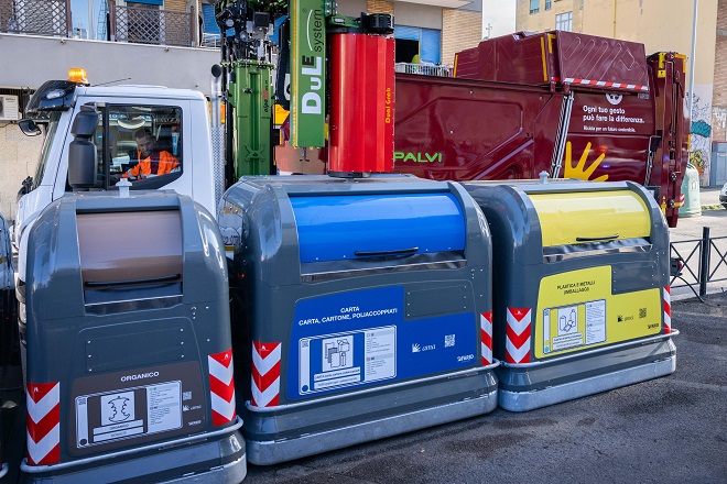 È iniziato in via Appia Nuova il posizionamento della nuova tipologia di cassonetti per la raccolta differenziata con l’arrivo, sulle strade romane, di 30 nuovi mezzi pesanti AMA. Le “campane bilaterali”, più capienti ma meno ingombranti, vengono svuotate dall’alto consentendo un posizionamento lontano dagli esercizi commerciali. Entro aprile saranno installati 2mila contenitori nei quartieri San Giovanni-Appio, Prati, San Lorenzo e Magliana. I primi sono stati posizionati nell’area centrale di via Appia Nuova, nella zona tra San Giovanni ad Arco di Travertino, alla presenza del sindaco Roberto Gualtieri, dell’assessora all’Agricolutura, Ambiente e Ciclo dei Rifiuti, Sabrina Alfonsi, del presidente del Municipio VII, Francesco Laddaga, del presidente e Ad di Ama, rispettivamente Bruno Manzi e Alessandro Filippi. “Abbiamo iniziato la messa a terra di duemila nuovi cassoni bilaterali, ‘campane’ di nuova generazione che avevamo sperimentato due anni fa – ha spiegato Gualtieri – Sono più belli, con funzionalità migliori e hanno una tripla caratteristica: si possono mettere in una posizione tale da liberare gli spazi davanti ai negozi; hanno un rapporto spazio-capienza migliore; facilitano lo svuotamento. In questo modo l’impatto sul traffico legato alla tempistica dello svuotamento è minore”. “L’azienda vuole andare sempre di più verso modelli di raccolta adeguati alle esigenze dei territori – spiegano i vertici Ama – , poi con questa modalità di cassonetto che si carica dall’alto togliamo quel vincolo al carico presente sui modelli caricabili solo da un lato. Una volta che saranno consolidate queste nuove installazioni ragioneremo su quali altre aree potrà essere estesa questa modalità che stiamo testando. Non saranno necessariamente solo grandi arterie, a Magliana ad esempio non avremo spazi da grande arteria. La scelta sarà in base al modello di flessibilità che potremo avere con questa tipologia”. “Quando partimmo con questa sperimentazione, insieme a quelle dei quartieri Prati, Trieste Salario – sottolinea l’Assessora Alfonsi – lo scopo era quello di mettere la campana giusta al posto giusto perché Roma aveva bisogno di un piano di raccolta differenziata e di passare da un’Ama soprattutto ‘indifferenziatocentrica’ a un’altra che avessi i mezzi per la raccolta differenziata. Questi cassonetti hanno una doppia apertura per favorire gli utenti e poi sono sistemati su una barra a terra, quindi r stano sempre nella stessa posizione e nello stesso ordine: prima l’indifferenziato, poi l’umido, la carta e la plastica. Questo gli conferisce un senso di riconoscibilità da parte della cittadinanza, andando incontro anche alle esigenze di quelle persone che hanno delle difficoltà”.