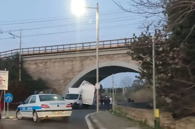Traffico fortemente rallentato sull’Aurelia, all’altezza dell’accesso sud. Un camion che stava scendendo da Boccelle-San Gordiano, infatti, si è incastrato sotto il ponte. Sul posto la Polizia locale.