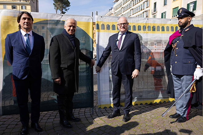 È stata riaperta oggi, al termine di un complesso e delicato intervento di consolidamento e restauro, la fontana di piazza del Viminale. Inaugurazione con il sindaco Roberto Gualtieri, il Ministro dell’Interno Matteo Piantedosi e il sovrintendente capitolino Claudio Parisi Presicce. L’intervento, della durata di 180 giorni, è parte del programma PNRR – Caput Mundi. I lavori – a più di vent’anni dall’ultimo restauro – si sono resi necessari a causa dello stato di degrado dovuto soprattutto alla presenza diffusa di incrostazioni calcaree, di estese patine biologiche legate all’inquinamento atmosferico e di una grave situazione di dissesto per la presenza di due lesioni trasversali sui lati brevi della vasca superiore. Con il supporto di indagini diagnostiche e misure ultrasoniche, è stato possibile ripristinare la continuità della vasca mediante l’inserimento, al suo interno, di una struttura in acciaio inox che permette le normali condizioni di funzionamento della fontana. L’intervento ha previsto diverse fasi, dalla disinfezione e disinfestazione con trattamento biocida, alla rimozione meccanica di depositi superficiali, dal consolidamento di fessurazioni e fratturazioni alla stuccatura e micro-stuccatura, dalla rimozione delle grappe inserite nel 1999 con conseguente ricollocazione e ancoraggio, al rifacimento dell’impermeabilizzazione e manutenzione dell’area di rispetto. A completare il restauro, la nuova illuminazione artistica a led con faretti posizionati sott’acqua: quattro punti luce nella vasca superiore e otto posizionati lungo il perimetro della vasca inferiore. “Riportiamo un’altra fontana al suo splendore dopo un lavoro di restauro che in questo caso è stato particolarmente impegnativo perché la fontana era proprio rotta; – ha commentato il sindaco Roberto Gualtieri – aveva lesioni profonde ed era tenuta insieme da una imbracatura di acciaio per non cadere a pezzi. E quindi non poteva contenere acqua. È una fontana molto bella il cui restauro fa parte del programma Caput mundi. Sono contento di averla inaugurata questa mattina insieme al ministro Piantedosi“. “Ringrazio il Sindaco e tutte le persone che hanno lavorato al restauro; – ha dichiarato il ministro Piantedosi – è un elemento di recupero di uno spazio molto bello che per noi è un valore aggiunto perché il personale del ministero dell’Interno, diverse migliaia di persone, da anni chiedeva il ripristino del decoro di questa piazza. Dà una migliore prospettiva al Viminale, a cui noi siamo molto affezionati“. L’intervento sulla fontana è stato realizzato in collaborazione con il Dipartimento Infrastrutture e Lavori Pubblici, Acea Ato 2 e Areti SpA.
