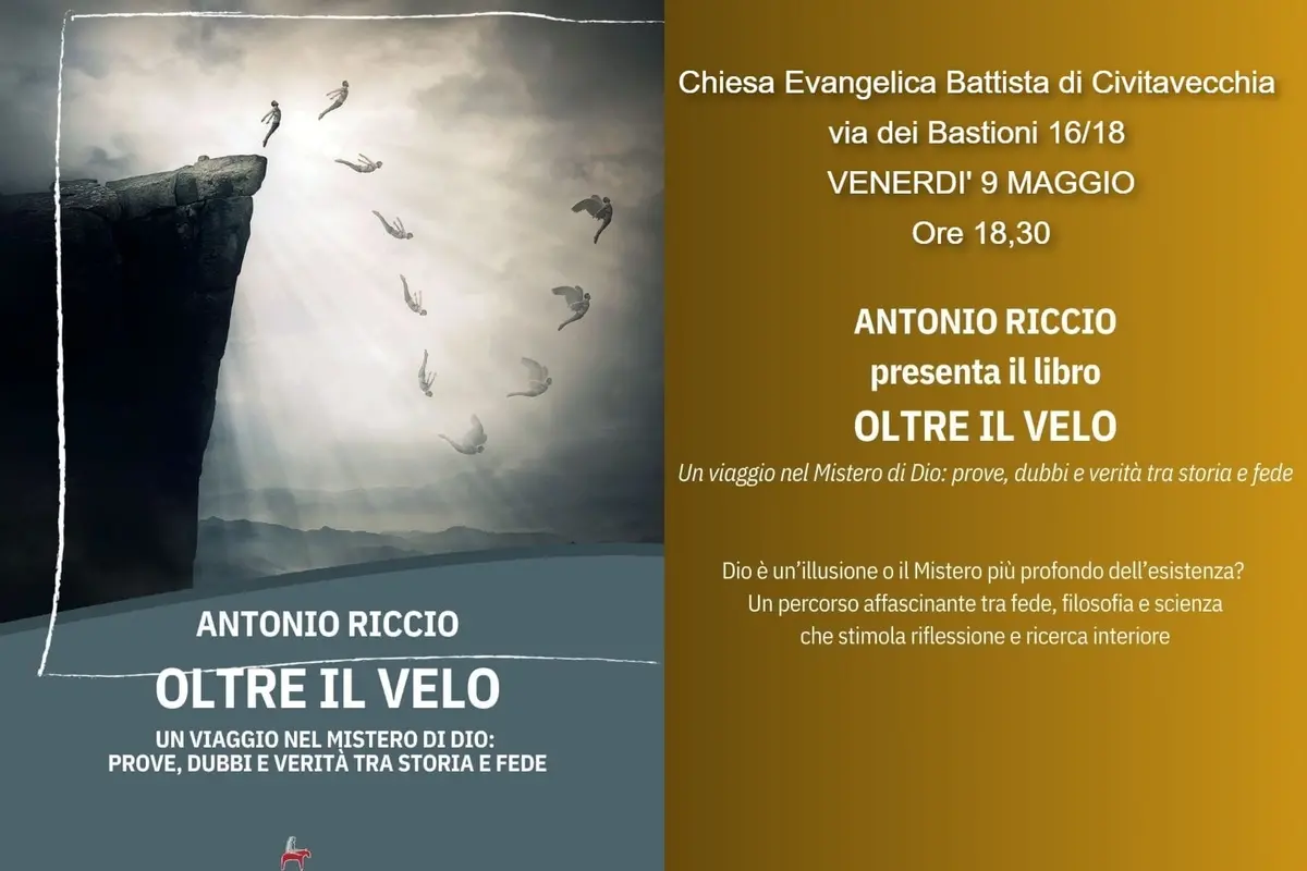 Il 9 maggio prossimo, alla Chiesa Evangelica Battista di Civitavecchia, si terrà la presentazione del libro “Oltre il Velo – Un viaggio nel mistero di Dio: prove, dubbi e verità tra storia e fede”, scritto da Antonio Riccio, fondatore, insieme a Fabrizio Pierantozzi, del nucleo Sommozzatori di Cerveteri. Questa opera si propone come un viaggio attraverso le complessità della fede e della ragione, affrontando temi che spaziano dall’emozione alla conoscenza, dalla scienza alla spiritualità, in una ricerca di significato che va oltre il tempo e lo spazio. “Oltre il Velo” esplora le radici della religiosità umana, analizzando come l’estetica e le emozioni influenzino l’esperienza sacra. Il libro invita a un dialogo tra le diverse tradizioni spirituali e si sofferma su argomenti come la meditazione, il rapporto con il tempo, la secolarizzazione e il bisogno di trascendenza. Attraverso una riflessione profonda, Riccio affronta domande esistenziali fondamentali, esaminando il legame tra fede e dubbio, le argomentazioni sull’esistenza di Dio e il dialogo tra scienza e religione. In sintesi, “Oltre il Velo” si inserisce nel panorama della teologia speculativa, proponendo un approccio aperto al confronto e all’approfondimento delle questioni più rilevanti che riguardano l’esistenza e la ricerca di Dio. La presentazione del libro rappresenta un’opportunità per esplorare queste tematiche e partecipare a un dialogo stimolante e ricco di significato.