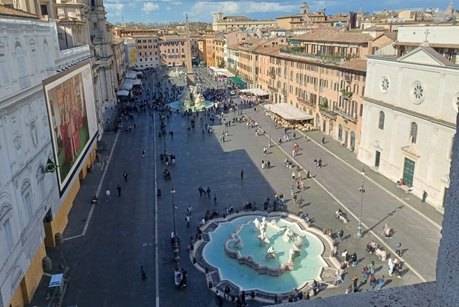 Visitare il Museo di Roma è come sfogliare l’album fotografico di famiglia. E non c’è momento migliore per questo rituale che il giorno del compleanno della capitale: il Natale di Roma che ricorre convenzionalmente il 21 aprile. Quest’anno si festeggiano i 2778 anni dalla fondazione. Guardando dipinti e fotografie monta pian piano quella nostalgia per Roma com’era. Già, ma come era Roma? Ce lo raccontano dipinti, reperti, plastici e fotografie raccolti nel palazzo Braschi , affacciato su Piazza Navona, sede del museo dagli anni ’50. Sala dopo sala al secondo piano le vedute della città eterna, le feste, i luoghi iconici si rincorrono sulle pareti e raccontano le forme di una città organismo vivente in perenne trasformazione. Mutamenti a cui è dedicato l’intero terzo piano dove le fotografie storiche di rioni scomparsi, scavi e cantieri, porti fluviali testimoniano le fasi dei lavori e dipingono il volto di una Roma sparita. Al secondo piano accoglie i visitatori John Staples nel ritratto realizzato da Pompeo Batoni. L’aristocratico irlandese – come tanti altri viaggiatori più o meno famosi – era a Roma nel 1773 per il Grand Tour. Il viaggio di formazione faceva perno specialmente in Italia e nella città di Roma, una tradizione riservata a ricchi nobili. Sarà lui la guida di questo ideale Grand Tour. A sinistra si accede agli Appartamenti Braschi riservati alla ritrattistica, ma è nelle sale a destra che la città emerge dai dipinti di vedute, momenti storici e della vita quotidiana. In queste sale vediamo una piazza del Popolo come la vedeva Caravaggio, piazza Navona senza la fontana dei Fiumi nel dipinto “Piazza Navona con il mercato” (entrambi datati sec XII, primo quarto), una Festa in maschera a Tor de’ Schiavi (Ippolito Caffi, 1844 circa). Non mancano visioni delle basiliche, degli obelischi e del Tevere.
