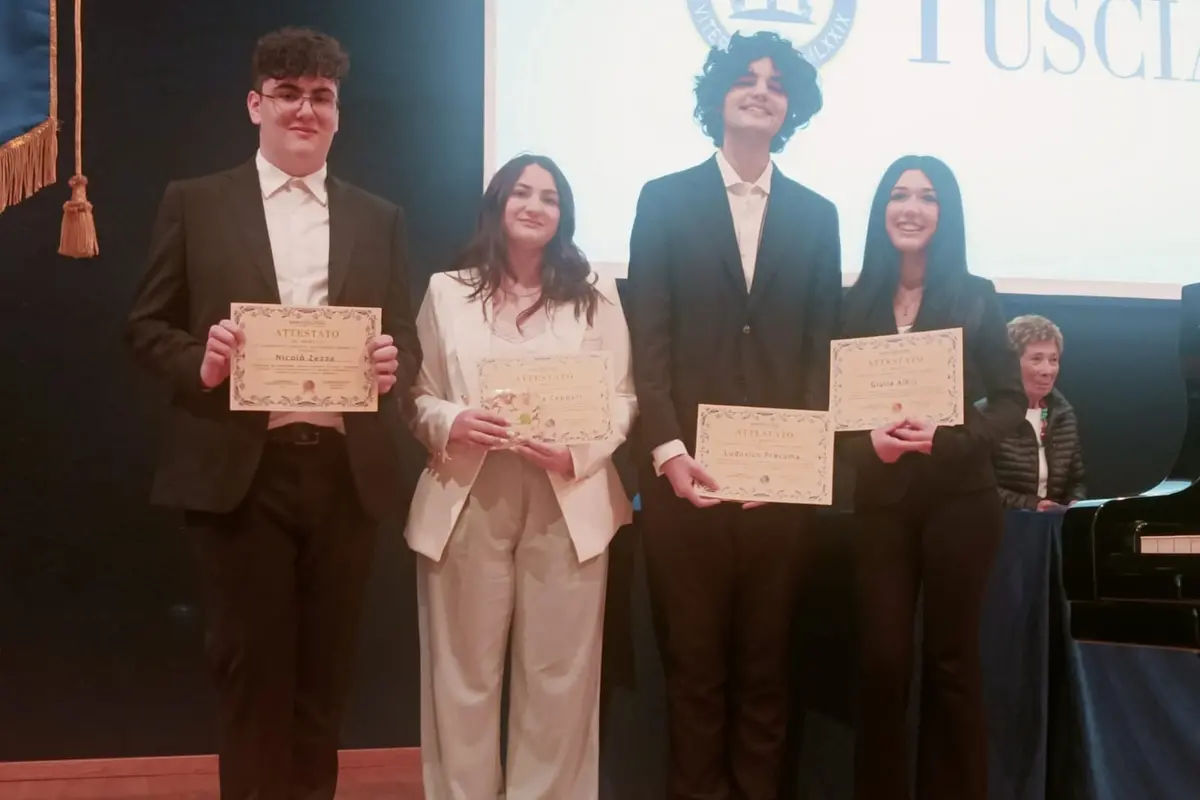Giulia Albis della 2 Am del liceo delle Scienze Umane e musicale Santa Rosa è la vincitrice dell’edizione 2025 del Premio Vismara, dedicato al professore e giornalista Alessandro Vismara. Dietro di lei Ludovico Precoma, sempre della 3 Am, ex aequo con Francesca Ceppari della 5 Bu. Terzo classificato Niccolò Zezza 3 Am. Menzione speciale per Arianna Massa della 5 Du. Per quanto riguarda il concorso fotografico, novità del premio di quest’anno, primo si è classificato è Giovanni Paolo Ciorba della 3 Cu, seconda Ksenia Del Bravo della 2 Eu e terzo Riccardo Leone della 3 Am. Menzione speciale per Arianna Massa della 5 Du. La giuria era formata da Massimiliano Vismara, figlio del professore cui è dedicato il premio e dai docenti: Alessandro Ernestini (dirigente scolastico), Marisa Cantarella, Michela Galamini, Paolo Felice, Teresa Ferrarese, Maria Vittoria Coletta, Rosetta Piergentili, Anna Elisa Luzzio, Carlo Luciani, Marco Zolla. A moderare il giornalista Federico Usai. Durante la mattinata di premiazioni i ragazzi del Liceo musicale hanno eseguito anche vari brani. Il dirigente scolatisco Alessandro Ernestini ha salutato i presenti e spiegato i principi del riconoscimento dedicato a Vismara. «Sono 8 anni che dirigo questo liceo e siamo cresciuti sul territorio – ha detto il preside del Santa Rosa – Il Premio Vismara è certezza e orgoglio della nostra scuola, ogni anno cresce di più. Siamo partiti dal concorso giornalistico e arrivati anche a quello fotografico: è un fiore all’occhiello della nostra scuola. Ringrazio la famiglia Vismara e la commissione dei docenti per la creazione di un valore aggiunto che è qualcosa di molto bello. Io raccolgo l’eredità di un percorso iniziato tanti anni fa». La professoressa Marisa Cantarella, ex docente e presente sul tavolo dei relatori, prese la cattedra di Vismara. «Ringrazio il professor Ernestini che è stato mio allievo – ha esordito Cantarella – Ricoprii la cattedra quando il professor Vismara lasciò l’insegnamento. Era un giornalista e un combattente e sempre in prima linea. Fu corrispondente per Messaggero, Rai 3, Ansa e presidente dell’Ente per il turismo. Il concorso che porta il suo nome è possibile solo per quanti offrono spontaneamente la loro disponibilità. Ringrazio le giornaliste Monica Dilecce, Valeria Terranova e Maria Letizia Riganelli per i laboratori di giornalismo e per quanti si sono offerti per il concorso fotografico». I ragazzi del liceo musicale, unico in tutta la Tuscia, hanno eseguito molti brani di musica classica e da camera. I primi eseguiti sono stati quelli di musica da camera con la classe della professoressa Micaela Galamini con pezzi di J.J. Quartz (1697-1773); quindi il Trio sonata in D MAjor (Allegretto-Andante-Moderato) con Ludovica Turchi (5 Am), Irene Oriolesi e Giada Miotto che hanno suonato con oboe. Quindi gli studenti del professor Giorgio Battaglioni hanno eseguito il concerto per viola “nello stile di J.C. Bach” – Secondo movimento di H. Casadeus (1879-1947): hanno suonato Niccolò Zezza (viola) e il professor Battaglioni (pianoforte). È stata la volta, poi, dell’esibizione della classe pianoforte della professoressa Maria Cristina Paolucci con testo di F. Chopin (opera 20 n.1 Scherzo) con Ludovico Precoma della 3 Am che ha eseguito l’opera al pianoforte con grande talentuosità. L’ultima esibizione è stata quella della classe del professor Matteo Biscetti con l’opera 8 n.2 di S.Rachmaninov suonata da Giulia Albis della 3 Am. Al termine delle premiazioni e dell’evento, Massimiliano Vismara, figlio del compianto professore e giornalista, ha ringraziato: «il Rettore Ubertini che ha permesso le premiazioni dentro l’Auditorium e tutta la commissione e i colleghi. Grazie ragazzi, i protagonisti siete voi. Alessandro Vismara aveva basato la sua attività sul rispetto dei diritti umani e dell’informazione libera per il progresso. Ha insegnato ai ragazzi la strada migliore senza forzarli e cercando di parlare dei fatti di Viterbo con un occhio distaccato. Oggi, ragazzi, lo fate rivivere: la memoria ci permette di ricordare una persona scomparsa donandole un po’ d’immortalità cui ogni essere umano ambisce». Presente in sala anche l’ex senatore Sergio Pollastrelli.