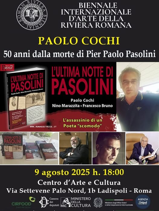 A cinquant’anni dalla tragica e ancora controversa morte di Pier Paolo Pasolini, Ladispoli rende omaggio a uno dei più grandi intellettuali del Novecento con un appuntamento di forte valenza storica, culturale e civile. Sabato 9 agosto alle ore 18:00, presso il Centro d’Arte e Cultura di via Settevene Palo Nord, si terrà la ripresentazione del libro-inchiesta firmato da Paolo Cochi, documentarista e scrittore, dedicato al misterioso omicidio dell’autore di Petrolio e Ragazzi di vita. L’iniziativa, inserita nel cartellone della Biennale Internazionale d’Arte della Riviera Romana, assume un significato particolare nell’anno del cinquantesimo anniversario della scomparsa di Pasolini, avvenuta nella notte tra l’1 e il 2 novembre del 1975 all’Idroscalo di Ostia, in circostanze ancora oggi oggetto di dubbi, indagini e revisioni storiche. Il volume, pubblicato nel 2018, è frutto della collaborazione con due figure centrali della giustizia e della criminologia italiana: l’avvocato Nino Marazzita, storico legale della famiglia Pasolini, e il professor Francesco Bruno, noto criminologo. Entrambi scomparsi recentemente, saranno ricordati durante l’incontro come testimoni fondamentali di un caso che ha segnato la coscienza civile del Paese. «Sarà un’occasione – spiegano gli organizzatori – per riflettere sull’opera e sull’attualità del pensiero pasoliniano, ma anche per riaprire il dibattito sulle tante ombre che ancora avvolgono la sua morte». L’ingresso è libero e l’invito è rivolto a tutta la cittadinanza, agli appassionati di letteratura, storia e giustizia. Un evento per chi crede nel valore della memoria e nella ricerca della verità.