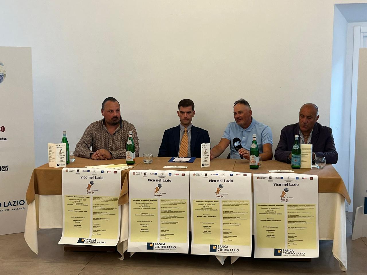 Si avvicina sempre di più la XII edizione del Premio Vico “Amo la mia terra” che domenica 24 agosto animerà la cittadina di Vico nel Lazio in provincia di Frosinone. Martedì 19 agosto si è tenuta la conferenza stampa di presentazione dell’evento nel ristorante “La Taverna del Castello”, situato nel cuore del centro storico di Vico nel Lazio. Una nuova location d’eccezione: l’ex asilo comunale, un tempo gestito dalle suore, oggi rinomato ristorante che rappresenta un vanto per tutta la Ciociaria. Alla stessa hanno partecipato il presidente del Comitato del Premio Massimo Ciullo, il suo vice Piero Costantini e il direttore artistico Manuel Zago. Quest’ultimo ha anche preso la parola per primo presentando l’edizione 2025 e parlando del lavoro svolto, in merito al quale ha parlato delle persone che hanno lavorato alla realizzazione dell’evento come di una famiglia. Poi è stato il turno di Costantini che si è soffermato sul ruolo degli sponsor e sulla loro importanza, soprattutto della Banca Centro Lazio che ha concesso il suo patrocinio. Un riconoscimento che tra gli altri hanno dato anche la Regione Lazio, la Provincia di Frosinone e la Camera di commercio della stessa provincia. Infine è stato il turno di Massimo Ciullo che ripercorso la storia del Premio Vico, nato nel 2010 e sottolineando che molte edizioni hanno avuto anche un tema specifico che le accompagnava e che in questa si parlerà della violenza di genere. La serata del 24 agosto, tra un riconoscimento e l’altro, vedrà anche degli artisti animare i presenti a partire da Sasà del Tarzan Team Animazione. L’appuntamento, come scritto, è per le ore 20.30 al ristorante “La Taverna del Castello”  di Vico nel Lazio.