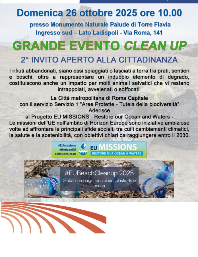 Domenica 26 ottobre 2025, alle ore 10 il monumento naturale di Torre Flavia ospiterà il Grande evento Clean Up, un’iniziativa dedicata alla tutela dell’ambiente e alla valorizzazione del territorio. L’ingresso dei partecipanti è previsto dal lato sud, in Via Roma 141, lato Ladispoli. L’evento, aperto a cittadini di tutte le età, ha l’obiettivo di sensibilizzare la comunità sull’importanza della conservazione degli spazi naturali e della corretta gestione dei rifiuti. I volontari, coordinati dagli organizzatori, prenderanno parte a operazioni di pulizia e raccolta dei rifiuti, contribuendo direttamente a rendere più pulito e fruibile il patrimonio naturalistico locale. Oltre all’attività pratica, il Clean Up prevede momenti informativi e di educazione ambientale, con spiegazioni sul valore ecologico di Torre Flavia e sul ruolo dei cittadini nella salvaguardia degli ecosistemi costieri. L’iniziativa si inserisce in un più ampio progetto di sensibilizzazione promosso dall’Amministrazione comunale di Ladispoli in collaborazione con associazioni ambientaliste locali e gruppi di volontariato. «Questi momenti sono fondamentali – commentano gli organizzatori – per rafforzare il senso di comunità e responsabilità verso il nostro territorio. Non si tratta solo di raccogliere rifiuti, ma di educare al rispetto dell’ambiente e di promuovere la bellezza naturale di Ladispoli». La partecipazione è gratuita e aperta a tutti: bastano guanti, abbigliamento comodo e tanta voglia di fare la differenza.
