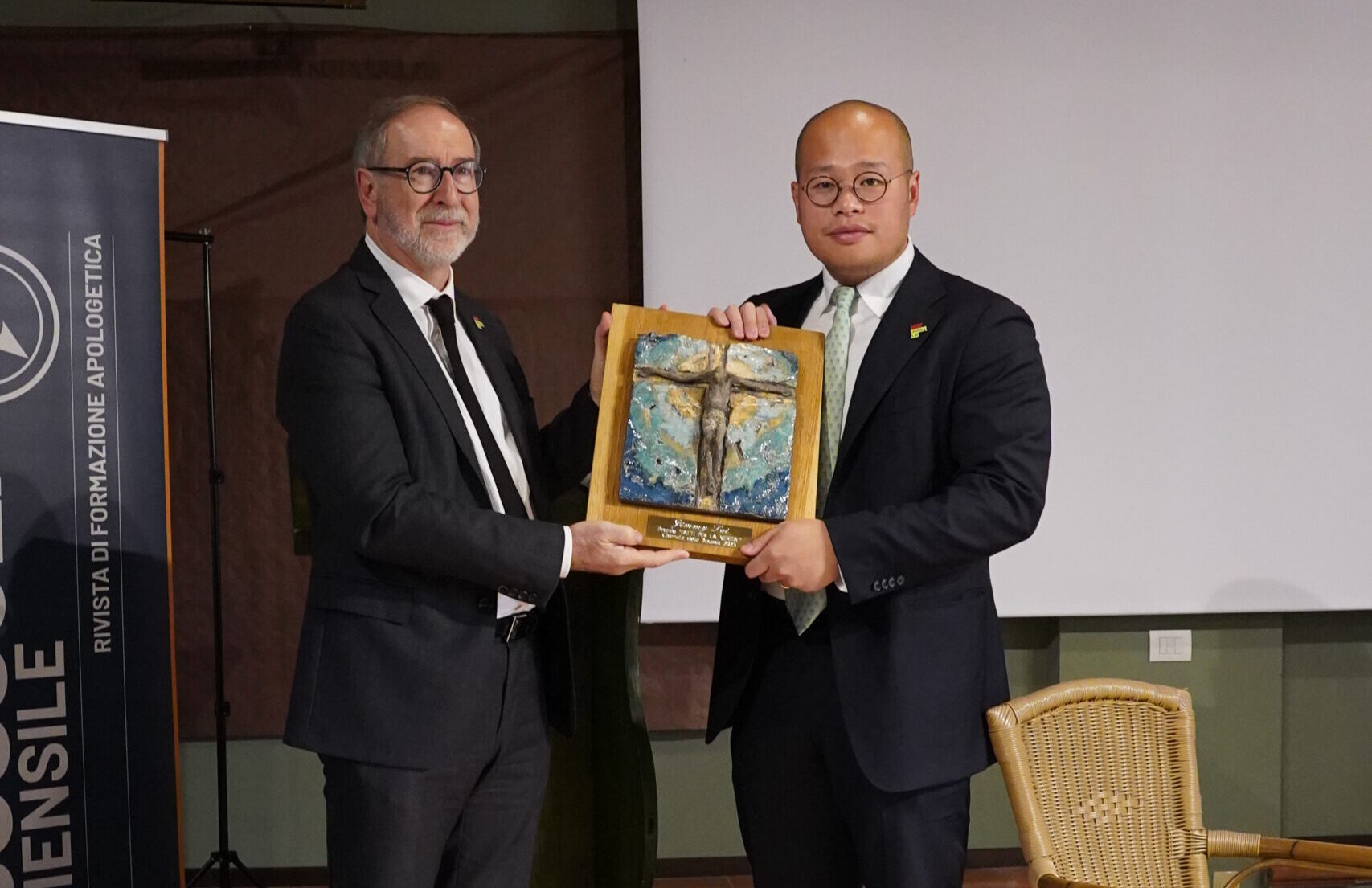 A ritirare il premio è il figlio, Sebastien Lai, al posto di suo padre, Jimmy Lai, imprenditore e giornalista di Hong Kong incarcerato dal regime cinese per la sua battaglia a difesa della libertà di stampa e della dignità umana. È, infatti, Jimmy Lai a ricevere il riconoscimento assegnato in occasione della prima edizione del Premio ‘Fatti per la Verità’, istituito da La Nuova Bussola Quotidiana per riconoscere chi difende la verità e la libertà con coerenza e coraggio, anche a costo della propria vita.