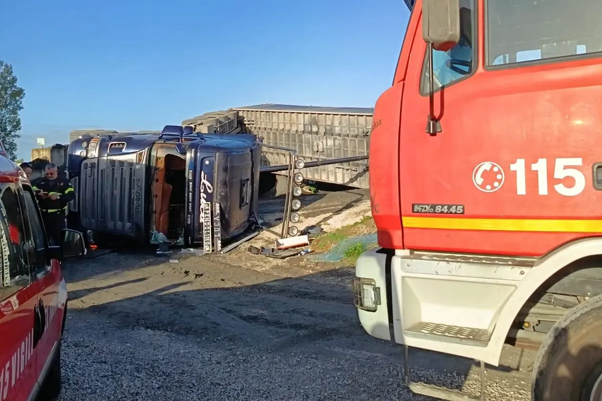 Momenti di paura questa mattina in via Settevene Palo, a Cerveteri, dove un tir si è ribaltato su un fianco durante le operazioni di scarico. L’incidente è avvenuto intorno alle 7 e ha coinvolto l’autista del mezzo pesante, rimasto intrappolato all’interno della cabina. Sul posto sono intervenuti tempestivamente i vigili del fuoco della squadra 26A del distaccamento di Cerenova, che dopo alcuni minuti di lavoro sono riusciti a estrarre il conducente, affidandolo poi alle cure dei sanitari del 118. L’uomo, cosciente ma visibilmente sotto shock, è stato trasportato all’ospedale San Paolo di Civitavecchia. Le sue condizioni, fortunatamente, non risultano gravi. In ausilio alle operazioni di soccorso è arrivata anche l’autogru Ag17 del comando dei vigili del fuoco di Civitavecchia, necessaria per il sollevamento e il successivo riposizionamento del mezzo ribaltato, che occupava parte della carreggiata. La zona è stata temporaneamente chiusa al traffico per consentire le operazioni di messa in sicurezza. Presenti sul posto anche i carabinieri della stazione locale, che hanno effettuato i rilievi per ricostruire la dinamica dell’accaduto e accertare le cause del ribaltamento, probabilmente legate a uno squilibrio del carico o a un cedimento del terreno. Solo dopo diverse ore la circolazione è tornata regolare, mentre il tir è stato rimosso e la strada ripulita dai detriti.
