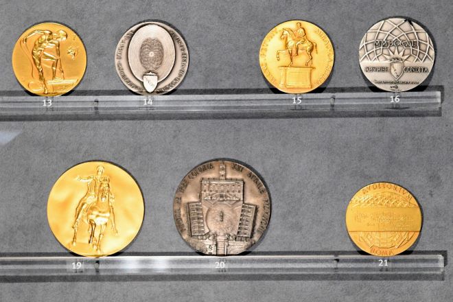 È una tradizione che va avanti da oltre sessant’anni, nata dall’idea di Armando Ravaioli, ex capoufficio stampa del Comune di Roma. Le medaglie del Natale di Roma, realizzate in tirature limitate oggi solo in bronzo e all’inizio anche in oro o argento, sono piccoli condensati di memoria e arte. Non solo oggetti cari ai collezionisti ma simboli di valore culturale e documentario che in alcuni casi, – come quello della medaglia che contribuì a salvare la statua di Marco Aurelio sulla piazza del Campidoglio – sono stati anche strumenti di diplomazia che hanno inciso sulla storia della città. Sono custodite nel Medagliere dei Musei Capitolini, a Palazzo dei Conservatori, insieme alle preziose collezioni numismatiche e di gioielleria. La prima medaglia vide la luce nel 1964, per celebrare il centenario della morte di Giuseppe Gioachino Belli. L’uso delle onorificenze capitoline, però, è stato formalizzato solo nel 2021, con l’approvazione del Regolamento delle Onorificenze Capitoline da parte dell’Assemblea Capitolina, dove si è stabilito che l’Encomio è accompagnato dalla consegna della medaglia celebrativa del Natale di Roma. Ogni 21 aprile, giorno della fondazione della città, viene così presentata la nuova edizione della medaglia. Il dritto cambia di anno in anno, mentre il rovescio – dal 1992 – ripropone spesso per più annate gli stessi bozzetti: la piazza del Campidoglio e i suoi palazzi simbolo della municipalità romana. La prima medaglia, disegnata da Goffredo Verginelli, venne consegnata all’allora presidente del Consiglio Aldo Moro e all’ex presidente della Repubblica Giovanni Gronchi, durante una cerimonia solenne nella Sala Orazi e Curiazi di Palazzo dei Conservatori, dove pochi anni prima erano stati firmati i Trattati di Roma. Un evento che nel 1977, a distanza quindi di vent’anni dalla firma, venne ricordato nella medaglia firmata da Lorenzo Guerrini, uno dei primi artisti a concepirla in stile astratto e plastico, trasformandola medaglia in una vera e propria mini-scultura. L’anno successivo fu la volta di Arnaldo Pomodoro, che creò una medaglia commemorativa per celebrare la fondazione e l’archeologia nel Lazio. Tra le geometrie irregolari che caratterizzano la sua opera, si nasconde anche la sua firma. Facciamo un passo indietro al 1965, con una piccola opera d’arte firmata da Pericle Fazzini, lo “scultore del vento” di Giuseppe Ungaretti. La sua medaglia è dedicata a Michelangelo e giocata sul gusto per il “non finito”.