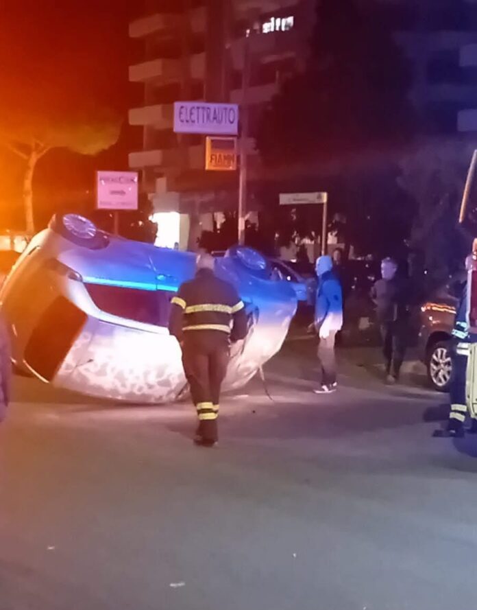 Marina di Cerveteri, auto si ribalta in Via Sergio Angelucci: conducente estratto dai Vigili del Fuoco