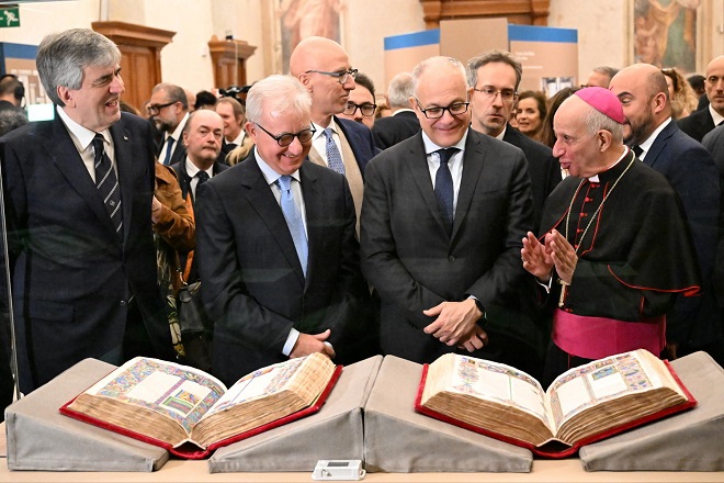 Sino al 16 gennaio 2026 sarà esposta nella Sala Capitolare del Senato della Repubblica, in Piazza della Minerva 38 a Roma, la Bibbia di Borso d’Este, uno dei massimi capolavori dell’arte rinascimentale italiana. L’esposizione, inserita nel programma delle attività giubilari, è promossa dal Senato della Repubblica, in collaborazione con la Presidenza del Consiglio dei Ministri, il Ministero della Cultura, le Gallerie Estensi, il Commissario Straordinario di Governo per il Giubileo e l’Istituto dell’Enciclopedia Treccani. Realizzata tra il 1455 e il 1461 dal calligrafo Pietro Paolo Marone e dai miniatori Taddeo Crivelli e Franco dei Russi, l’opera rappresenta una delle massime espressioni dell’arte della miniatura, unendo in modo mirabile raffinatezza ornamentale, perizia artistica e ispirazione religiosa. L’evento ha un carattere di eccezionalità, poiché il manoscritto è conservato nella Biblioteca Estense di Modena e viene esposto al pubblico solo in rarissime occasioni. I visitatori avranno a disposizione schermi touchscreen per consultare la versione digitale della Bibbia, con immagini ad altissima risoluzione. All’inaugurazione erano presenti il Presidente del Senato della Repubblica, Ignazio La Russa; del Sottosegretario di Stato alla Presidenza del Consiglio, Alfredo Mantovano; del Commissario straordinario per il Giubileo, Roberto Gualtieri; del Pro-Prefetto del Dicastero per l’Evangelizzazione della Santa Sede, monsignor Rino Fisichella; del Presidente dell’Istituto della Enciclopedia Italiana, Carlo Ossola; del Direttore delle Gallerie Estensi, Alessandra Necci.