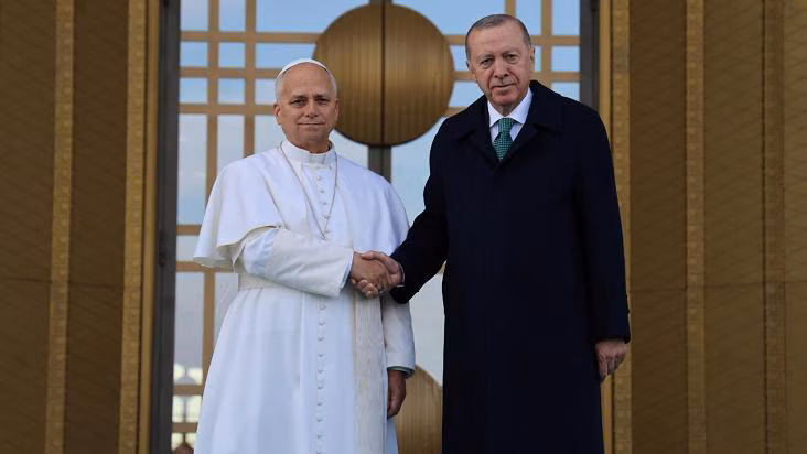 È iniziato il primo viaggio apostolico di Papa Leone che lo porterà prima in Turchia con la tappa a Iznik, in occasione del 1700° anniversario del primo Concilio di Nicea, mentre il secondo Paese che visiterà sarà il Libano a partire da domenica 30 novembre. “Oggi più che mai c’è bisogno di personalità che favoriscano il dialogo e lo pratichino con ferma volontà e paziente tenacia” perché “dopo la stagione della costruzione delle grandi organizzazioni internazionali, seguita alle tragedie delle due guerre mondiali, stiamo attraversando una fase fortemente conflittuale a livello globale, in cui prevalgono strategie di potere economico e militare”. Verso quella che Papa Francesco chiamava “terza guerra mondiale a pezzi”. A sottolinearlo è stato oggi Papa Leone XIV da Ankara dove è giunto per il su primo viaggio apostolico. Nel suo discorso alla Nation’s Library nel corso dell’incontro con le autorità, la società civile e il Corpo Diplomatico, presente il presidente turco Recep Tayyip Erdogan, il papa ha, quindi, detto che “non bisogna cedere in alcun modo a questa deriva! Ne va del futuro dell’umanità. Perché le energie e le risorse assorbite da questa dinamica distruttiva sono sottratte alle vere sfide che la famiglia umana oggi dovrebbe affrontare invece unita, cioè la pace, la lotta contro la fame e la miseria, per la salute e l’educazione e per la salvaguardia del creato”. “La Santa Sede, con la sua sola forza, che è quella spirituale e morale, – ha poi assicurato il Papa – desidera cooperare con tutte le Nazioni che hanno a cuore lo sviluppo integrale di ogni uomo e di tutti gli uomini e le donne. Camminiamo insieme, allora, nella verità e nell’amicizia, confidando umilmente nell’aiuto di Dio”. Il Papa, nel discorso alle autorità della Turchia, sottolinea l’importanza della famiglia in un mondo in cui invece si guarda alle “solitudini” per fare “business”. “Non è da una cultura individualistica, né dal disprezzo del matrimonio e della fecondità, che le persone possono ottenere maggiori opportunità di vita e di felicità. A questo inganno delle economie consumistiche, in cui le solitudini diventano business, è bene rispondere – sottolinea il Pontefice – con una cultura che apprezza gli affetti e i legami”. Quindi il Papa chiede di valorizzare il ruolo donne che “anche attraverso lo studio e la partecipazione attiva alla vita professionale, culturale e politica, sempre più si mettono a servizio del Paese e della sua positiva influenza nel panorama internazionale”. ”Davanti alle sfide che ci interpellano, essere un popolo dal grande passato rappresenta un dono e una responsabilità. L’immagine del ponte sullo Stretto dei Dardanelli, scelta come emblema di questo mio viaggio, esprime con efficacia il ruolo speciale del vostro Paese. Voi avete un posto importante nel presente e nel futuro del Mediterraneo e del mondo intero, anzitutto valorizzando le vostre interne diversità”. Lo ha detto il Papa nel suo primo discorso in Turchia parlando al presidente Erdogan, alle Autorità e al Corpo diplomatico. ”Prima di collegare Asia ed Europa, Oriente e Occidente, infatti, – ha sottolineato -quel ponte lega la Turchia a sé stessa, ne compone le parti e così ne fa, per così dire, dall’interno un crocevia di sensibilità, che omologare rappresenterebbe un impoverimento”.La prima visita internazionale del pontificato di Papa Leone in Turchia ”consoliderà i nostri rapporti di amicizia e comprensione reciproche. Tutti i messaggi trasmessi dalla Turchia aumenteranno le speranze di pace in tutto il mondo”. Lo ha detto il presidente turco Erdogan nel suo intervento davanti al Papa . Erdogan ha parlato anche dell’incontro bilaterale che si è tenuto con la delegazione vaticana prima dell’incontro pubblico. ”Nel bilaterale c’è stato uno scambio di vedute sui problemi del mondo, sono stati affrontati temi che costituiscono sfide per umanità: dai conflitto alle crisi umanitarie , all’ambiente, sfide che vanno affrontate insieme con reciproca comprensione”. ”I tanti luoghi di culto – ha detto – testimoniano la nostra convivenza. Chiunque vive in questo paese e’ cittadino senza discriminazioni . Tutti i popoli devono essere trattati ugualmente”. ”La Turchia – ha evidenziato ancora – e’ uno dei paesi che ha dato aiuto umanitario quasi più di tutti i paesi, aprendo le porte a tutti i profughi che scappavano dalla guerra. Gli appelli del Papa alla pace sono ben accolti da noi. Pace e giustizia per tutti ”.