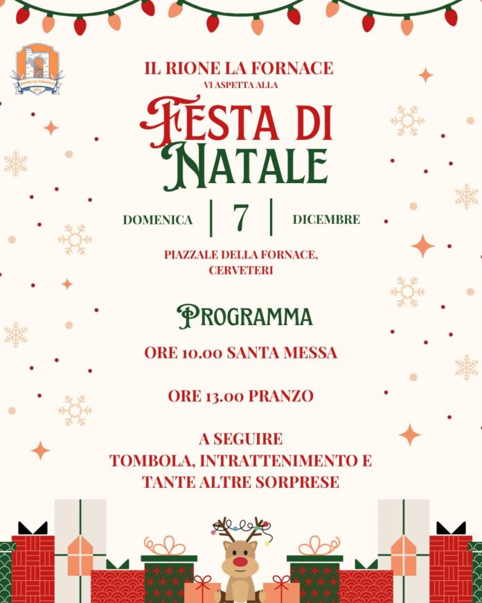 Domenica 7 dicembre il Rione Fornace di Cerveteri si prepara a vivere una giornata all’insegna della tradizione e della convivialità con l’evento natalizio del quartiere. I festeggiamenti prenderanno il via alle ore 10:00 con la Santa Messa presso il piazzale adiacente all’asilo Montessori, per poi proseguire con il pranzo comunitario e un pomeriggio dedicato ai giochi e alle attività per grandi e piccoli. L’intera manifestazione si svolgerà al coperto, in un ambiente riscaldato, per garantire il massimo comfort ai partecipanti. Grazie al sostegno delle attività locali, i volontari hanno organizzato diverse sorprese e premi che verranno distribuiti durante il pomeriggio, rendendo l’appuntamento un’occasione speciale per famiglie e residenti. Il pranzo prevede una quota di partecipazione di 20 euro e includerà antipasto, primo, secondo, contorno, acqua e dolci tipici. Per partecipare è obbligatoria la prenotazione, contattando il numero 3202739006. L’evento rappresenta un momento importante per il Rione Fornace, unendo la comunità in un clima di festa e solidarietà, e confermando la vitalità e l’impegno dei volontari locali nella promozione delle tradizioni natalizie a Cerveteri.