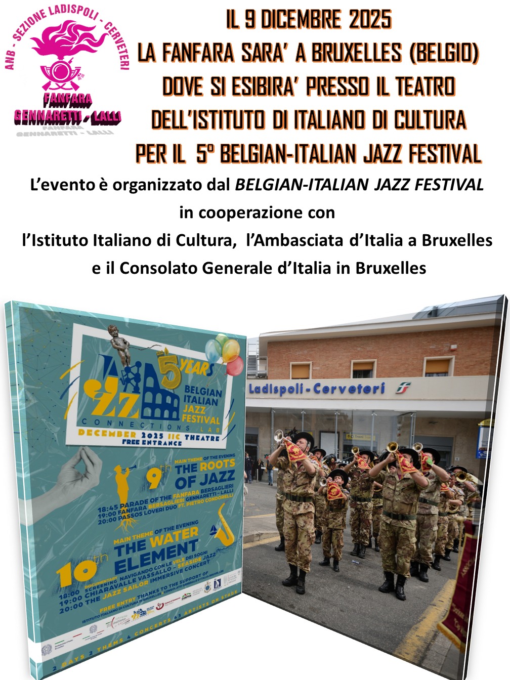 Un pezzo di Ladispoli approderà nel cuore dell’Europa. La Fanfara dei Bersaglieri della città è infatti attesa il 9 dicembre all’Istituto Italiano di Cultura di Bruxelles per inaugurare la quinta edizione del “Belgian Italian Jazz Festival”, uno degli appuntamenti più prestigiosi dedicati alla musica italiana nel panorama culturale belga. La formazione ladispolana, da anni ambasciatrice musicale del territorio, aprirà ufficialmente la rassegna con una performance che unirà tradizione bersaglieresca e sonorità moderne, in un contesto internazionale che celebra il dialogo tra culture attraverso il jazz e la musica d’autore. L’invito ricevuto dalla Fanfara testimonia il valore artistico e la reputazione consolidata del gruppo, capace di portare oltre confine non solo le proprie qualità musicali, ma anche un pezzo di identità cittadina. L’evento vedrà la partecipazione di artisti e gruppi provenienti da tutta Italia, con un programma che punta a valorizzare il talento nazionale e a rafforzare i legami culturali tra Italia e Belgio. Per Ladispoli si tratta di un’occasione di grande prestigio: la presenza della Fanfara in un contesto così rilevante rappresenta un motivo di orgoglio per la comunità e un riconoscimento al lavoro costante dei musicisti, guidati da passione, disciplina e spirito di appartenenza. Il “Belgian Italian Jazz Festival” proseguirà nei giorni successivi con concerti, incontri e iniziative collaterali, ma l’apertura affidata alla Fanfara dei Bersaglieri di Ladispoli segna già un momento simbolico: la musica locale che si fa ambasciatrice dell’Italia in Europa, con Ladispoli protagonista.