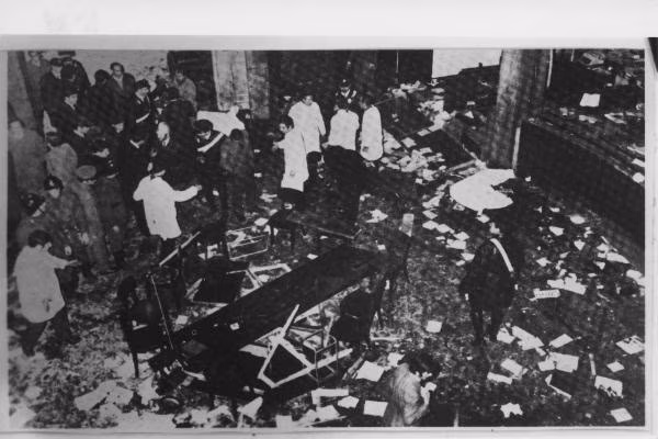Le immagini dei soccorsi dopo lo scoppio della bomba alla Banca Nazionale dell’Agricoltura a Milano