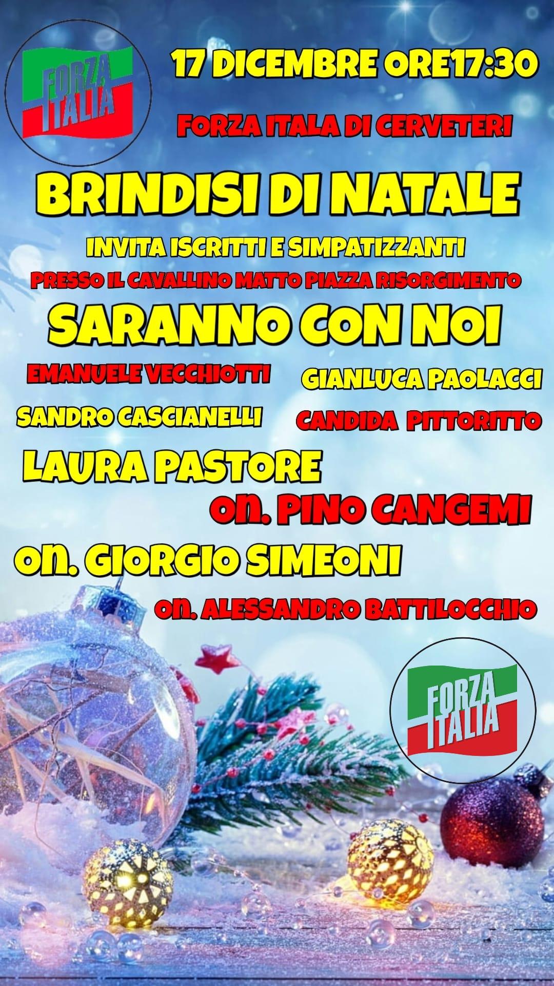 Un momento di auguri natalizi, ma anche un’importante occasione di confronto politico e di rilancio dell’azione sul territorio. È questo il significato del Brindisi di Natale promosso da Forza Italia, in programma martedì 17 dicembre alle ore 17:30 presso il “Cavallino Matto”, in piazza Risorgimento a Cerveteri. All’iniziativa prenderanno parte il Segretario Comunale, i dirigenti locali, oltre a rappresentanti regionali e nazionali del partito, a testimonianza dell’attenzione e del radicamento di Forza Italia sul territorio. «L’obiettivo – dichiara Candida Pittoritto, coordinatrice Azzurro Donna Cerveteri – è quello di continuare a costruire una proposta politica credibile, concreta e fortemente radicata nella realtà locale, capace di rispondere alle esigenze dei cittadini». L’incontro sarà anche un’occasione di dialogo e confronto sui temi politici di maggiore attualità, in un clima di condivisione e partecipazione. I giornalisti e gli operatori dell’informazione sono invitati a partecipare.