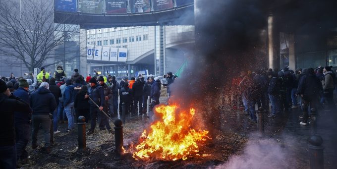 Agricoltori in piazza a Bruxelles: corteo verso il quartiere europeo tra le proteste. Alta la tensione