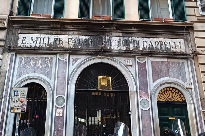 Dagli “abbacchi e frattaglie” ai cinema, dai filati ai bar: le insegne storiche sono disseminate sulle facciate dei palazzi di Roma. Sono la memoria storica del tessuto produttivo dei rioni del centro, tra mestieri scomparsi e tradizioni che arrivano fino ai nostri giorni. Il signage sin dall’antichità ha avuto un ruolo fondamentale per la comunicazione visiva. Le insegne sono state per decenni l’unica forma di pubblicità per moltissimi negozi e botteghe e nel tempo si sono trasformate, ad esempio per l’uso del neon, o per le caratteristiche grafiche di lettering e cromie. La storia delle insegne storiche di Roma si intreccia con quella dell’illuminazione, a gas ed elettrica, poi al neon che progressivamente invade gli spazi pubblici e le strade e consente di fare pubblicità anche di notte. Ma le insegne più antiche non sono illuminate e sono direttamente dipinte sulle mura o fissate alle pareti. Sono descrittive, hanno la funzione di comunicare quali prodotti vengono venduti e chi sono i proprietari dell’esercizio commerciale. Un esempio che risale al 1885 è la serie di insegne sulle sei vetrine in vicolo delle Bollette e via delle Muratte che segnalavano la sede principale della storica Vaccheria Serafini. Si trattava di una importante realtà produttiva che vendeva direttamente latte e derivati ma anche altri prodotti, come si legge proprio nelle iscrizioni in rosso: crema, caffè e burro. L’attività di vendita era letteralmente a chilometro zero, perché contigua alla produzione. All’interno dei locali in pieno rione Trevi, si trovava infatti anche la stalla con le mucche. Le insegne hanno uno stile semplice con caratteri in rosso all’interno di riquadri con cornice di stucco. Analoghe le tre insegne collocate al di sopra delle vetrine in via del Pellegrino, 161-163-164 che indicano altrettante attività ormai chiuse da tempo: Pellami Suole, Mercerie e Caffè. Le iscrizioni sono incise e incorniciate e, in base alla documentazione conservata presso l’Archivio storico capitolino, risalgono anch’esse alla fine dell’Ottocento. Rimaste a lungo coperte dall’intonaco sono riemerse soltanto a seguito della ristrutturazione dell’edificio alla fine degli anni Novanta, inizi del Duemila e sono state ripristinate anche nella colorazione.