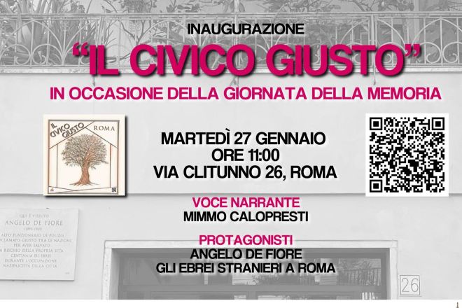 In occasione della Giornata della Memoria, che si celebra ogni anno il 27 gennaio in ricordo delle Vittime dell’Olocausto, il Municipio Roma II promuove il progetto “Il Civico Giusto”, volto a preservare, diffondere e narrare la storia di coloro che si opposero al regime nazifascista, rischiando la vita per salvare altri esseri umani. Proprio martedì 27, alle ore 11, in via Clitunno 26, verrà inaugurato il Civico Giusto dedicato ad Angelo De Fiore, vice questore che durante l’occupazione tedesca di Roma tra il 1943 e il 1944 salvò la vita a centinaia di cittadini ebrei. Il progetto, realizzato dall’Associazione Roma BPA – Best Practices Award- Mamma Roma e i suoi figli minori, prevede l’apposizione di una mattonella commemorativa dotata di QR Code e video che raccontano, con la voce narrante di Mimmo Calopresti, la storia e il coraggio di De Fiore. Un’iniziativa che intende rendere visibile e accessibile la memoria civile, valorizzando gli atti di giustizia e umanità compiuti da uomini e donne durante uno dei periodi più bui della nostra storia. Per il Municipio II si tratta di un impegno concreto a favore della cultura della memoria, della legalità e della solidarietà.